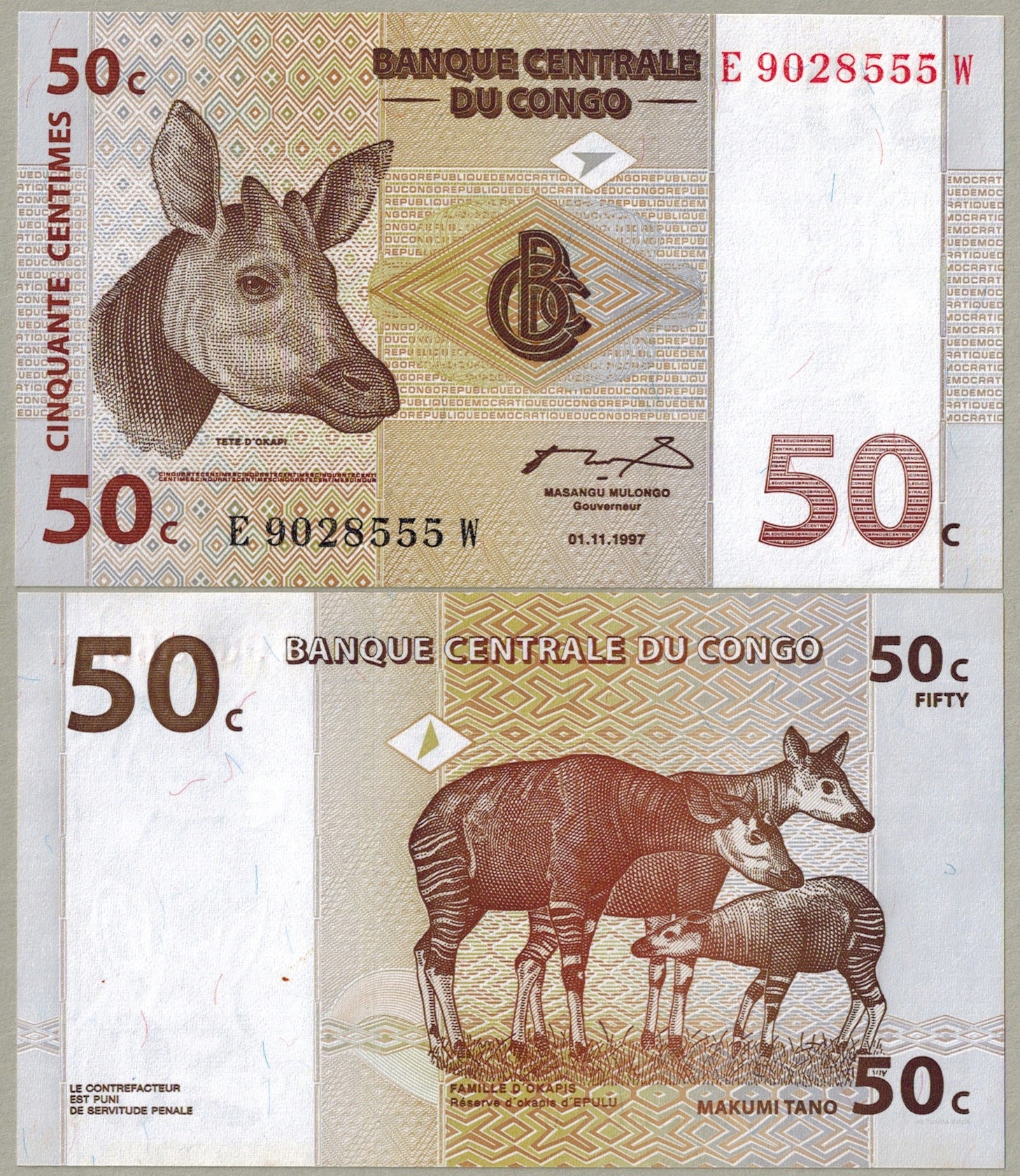 Конго 50 Centime 1997 P-84 UNC