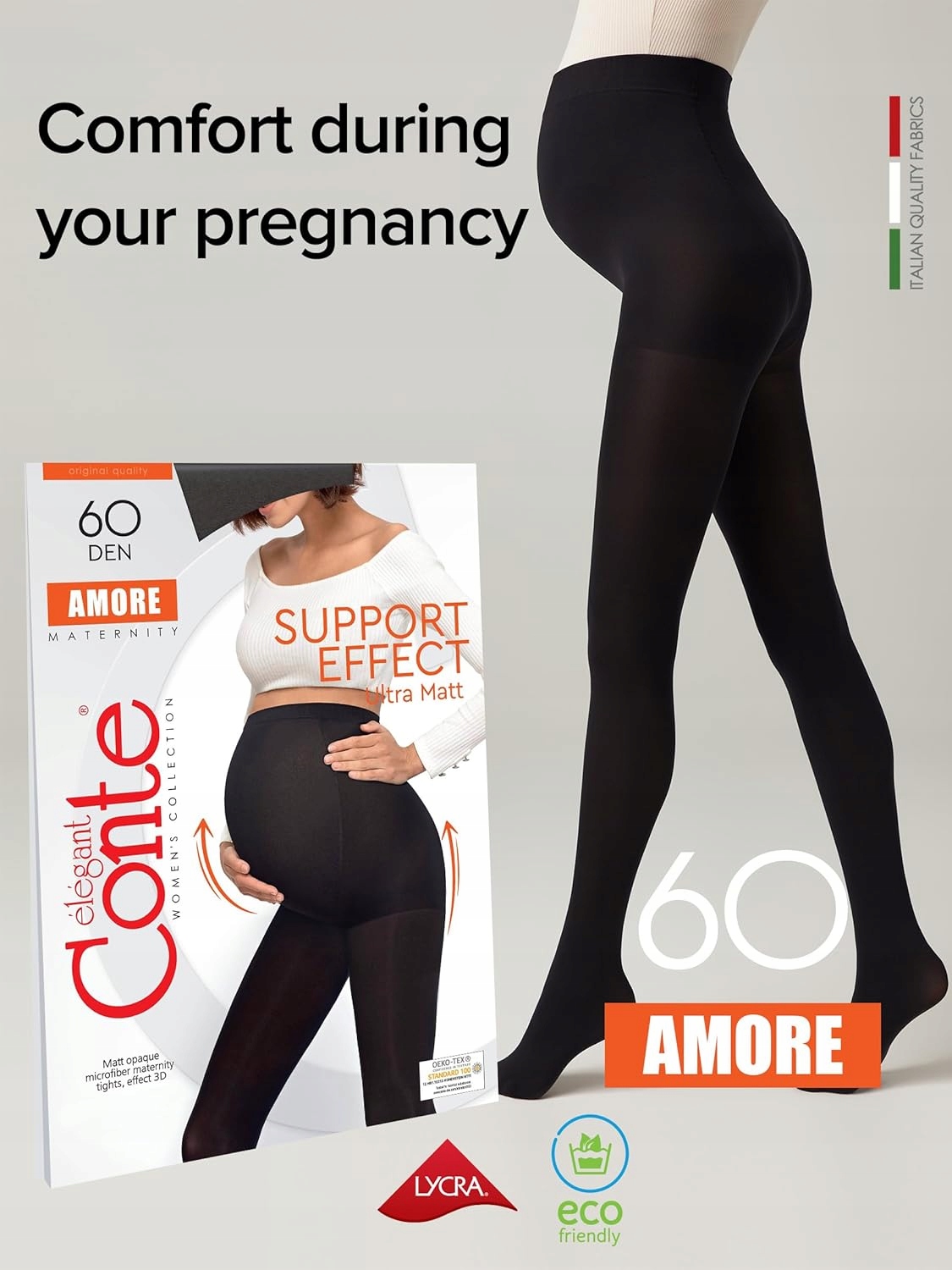 Conte Elegant Amore Rajstopy Ciążowe Matowe Czarne Rajstopy 60 DEN roz. 3 M