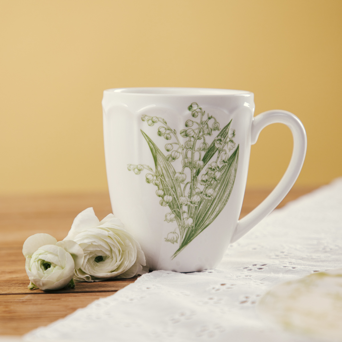 кухоль конвалі - це поєднання класики та делікатності. Його романтична Лілія долини вводить натяк на весняну свіжість інтер'єру, а тонкі прикраси на рангу надають йому елегантного характеру. Це ідеальний вибір для любителів стильних деталей у повсякденному використанні. Його зручна ручка забезпечує комфорт використання, а обережно обрані пропорції роблять це чудово в руці.