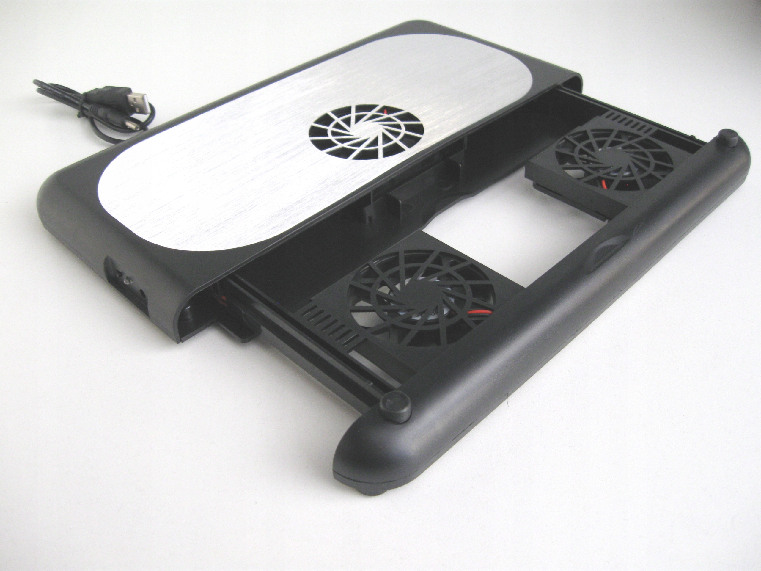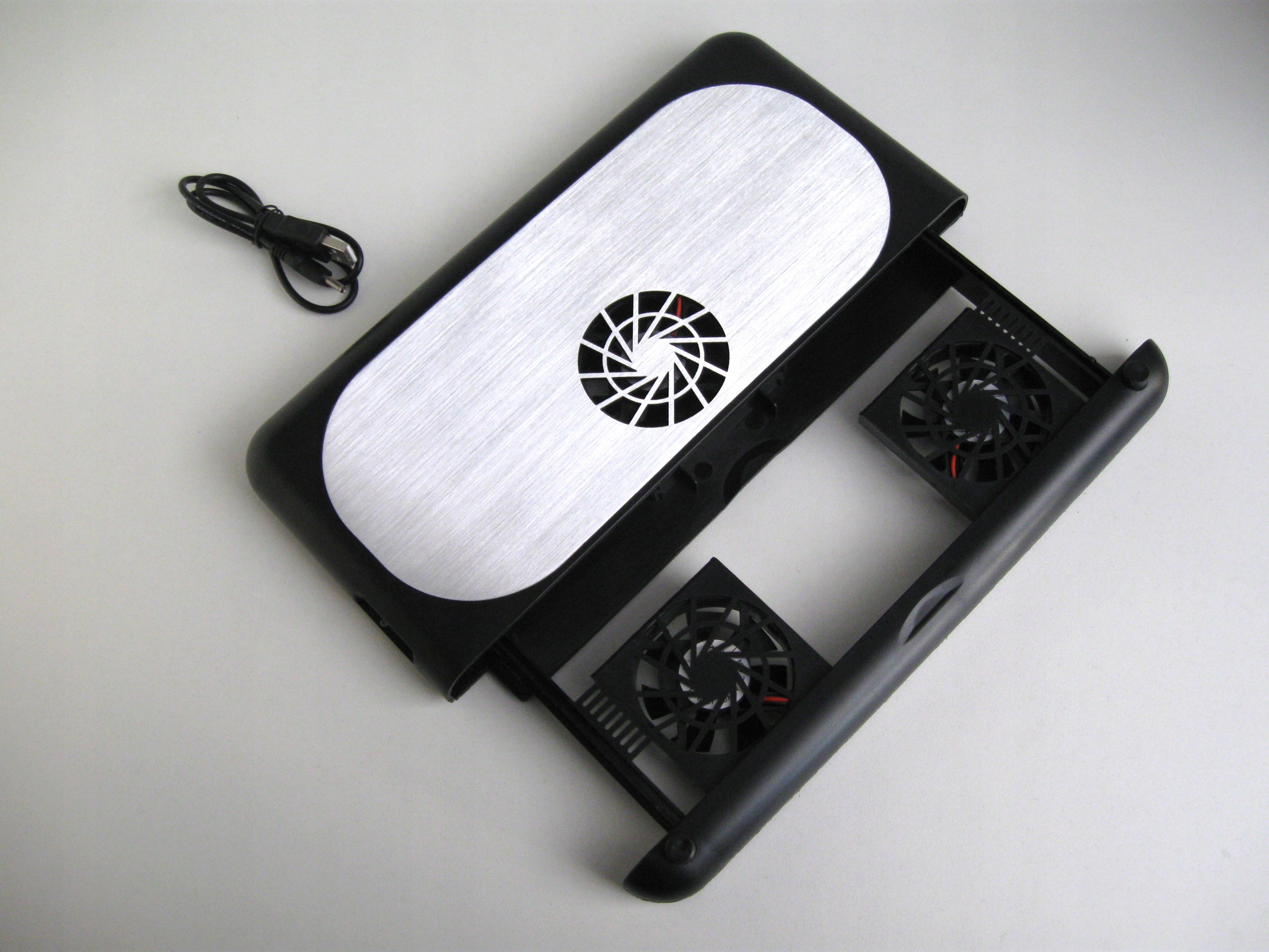 Вона має три низькошвидкісні вентилятори, які охолоджують ноутбук. Ці вентилятори живляться від енергії, що надходить від порту USB. Для цього не потрібне живлення від мережі чи будь-які батареї.