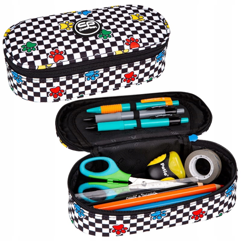 Пенал виконаний в приємних оку кольорах з картатим візерунком з різнокольоровими лапками.