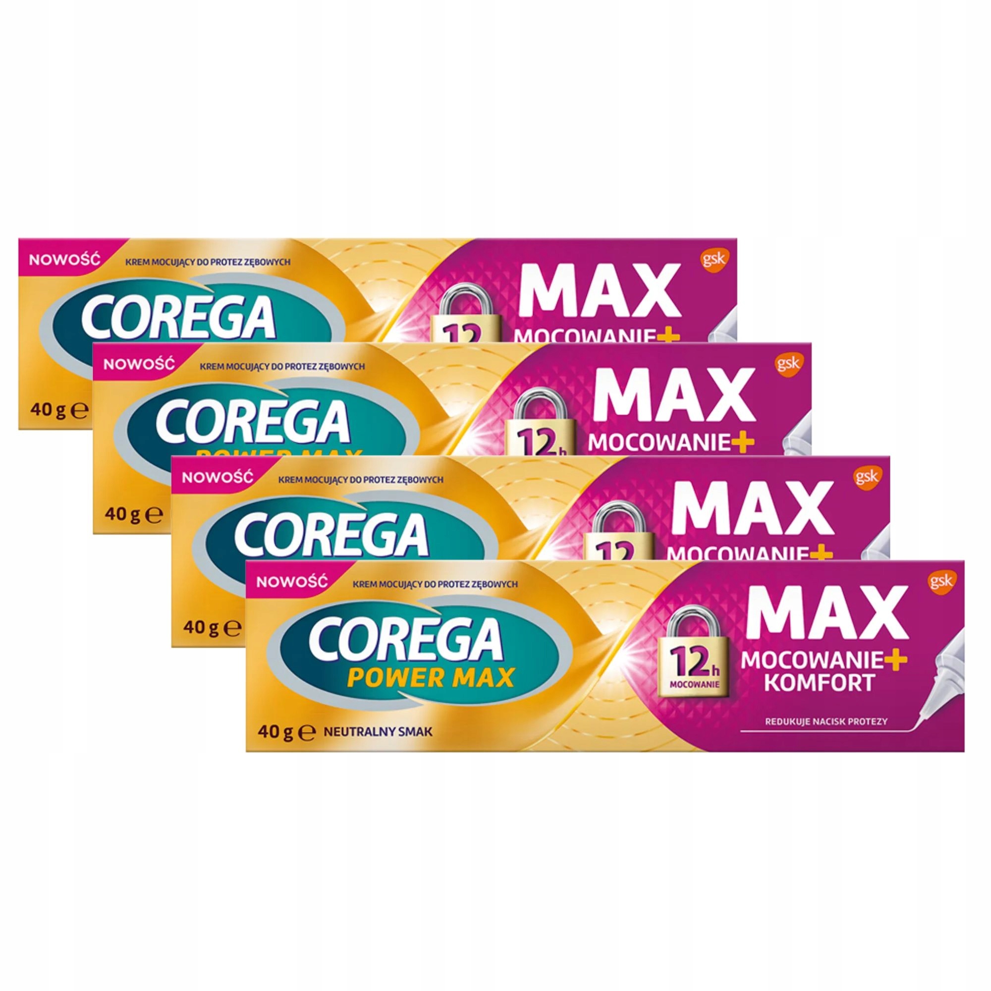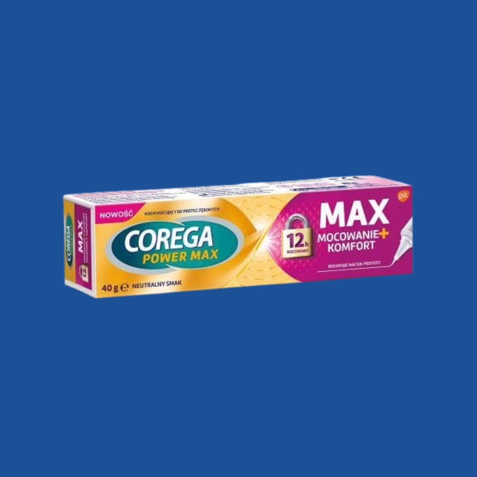 Corega Power Max Mounting + Komfort — фіксуючий крем для зубних протезів, який не містить ароматизаторів і штучних барвників і має нейтральний смак. Туба має точний аплікатор, що полегшує використання засобу. Зовнішня упаковка виготовлена з переробленого картону та підлягає переробці.