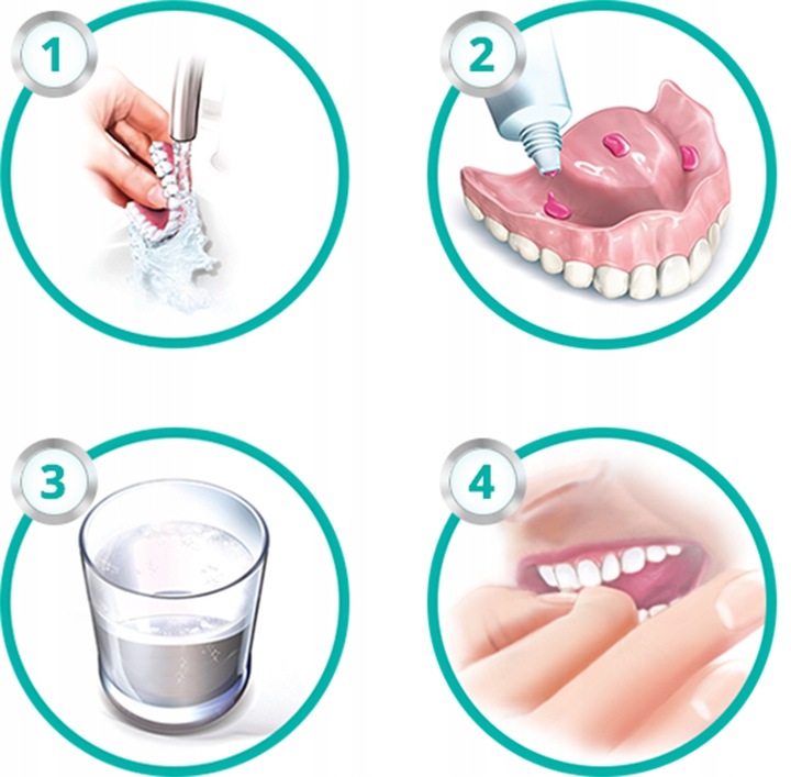 4️⃣Вставте зубний протез, міцно натисніть на нього та прикусіть на кілька секунд.