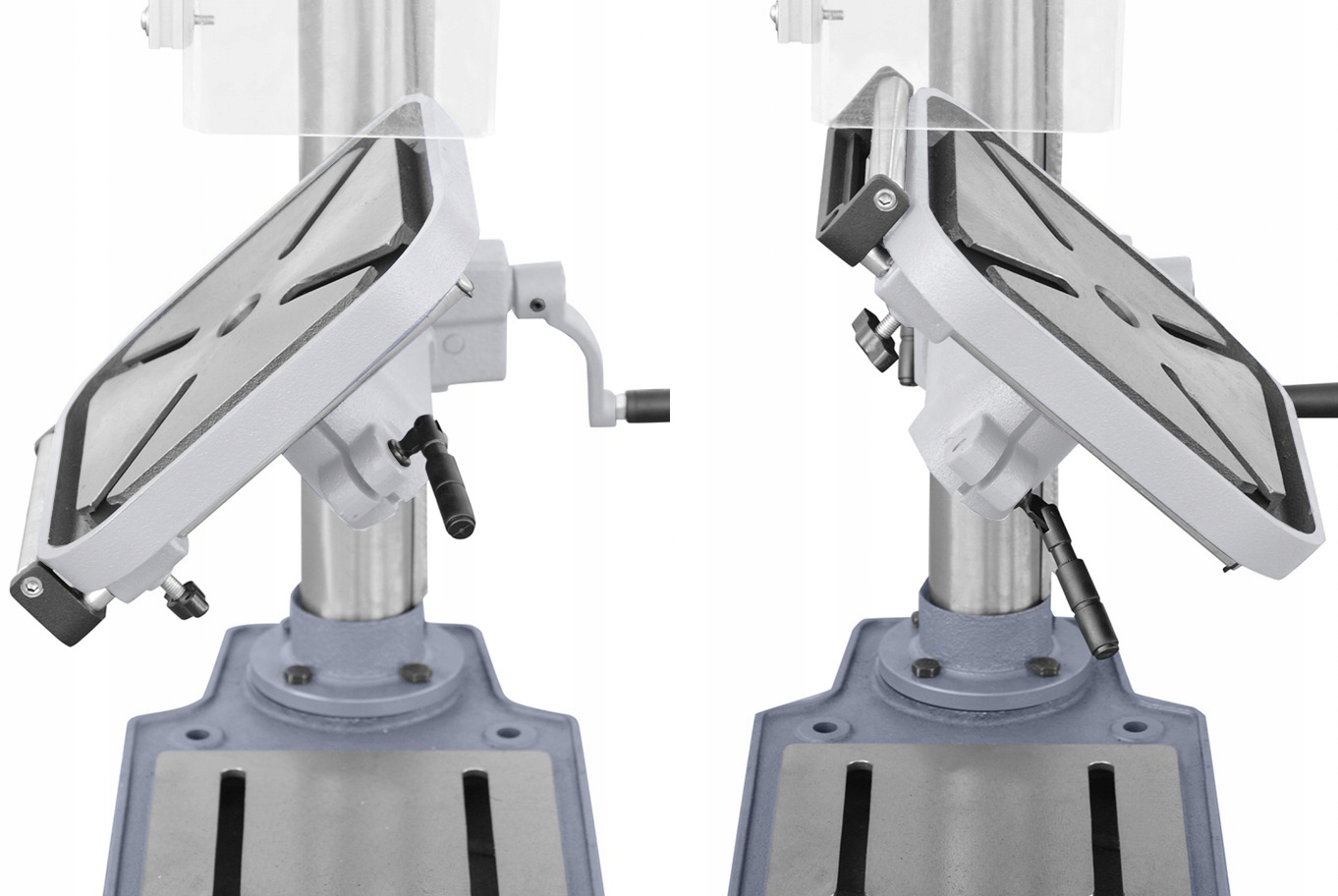 Свердло завдяки більш жорсткій конструкції забезпечує ідеальну якість свердління. Перекидний стіл дозволяє виконувати широкий діапазон обробки. Апарат оснащений електронним індикатором швидкості, індикатором глибини свердління та освітленням робочого поля.