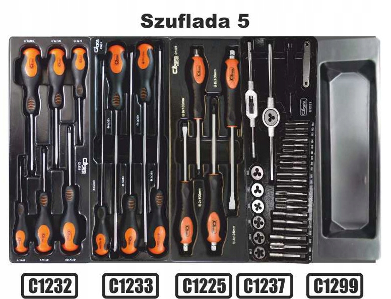 - шухляди, встановлені на кулькових напрямних - висуваються до самого кінця, що забезпечує повний і зручний доступ до вставок для інструментів