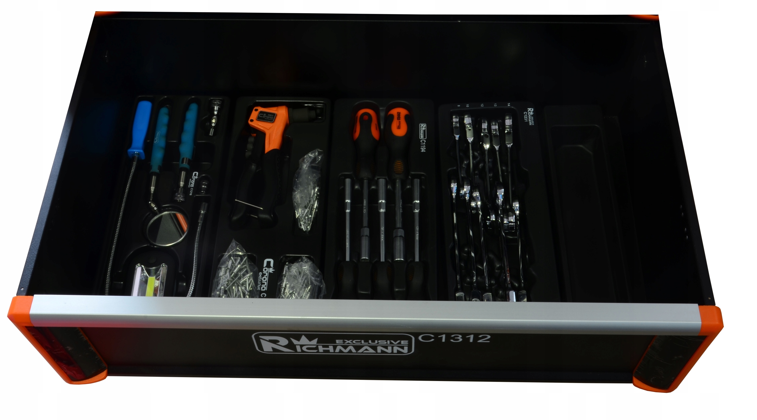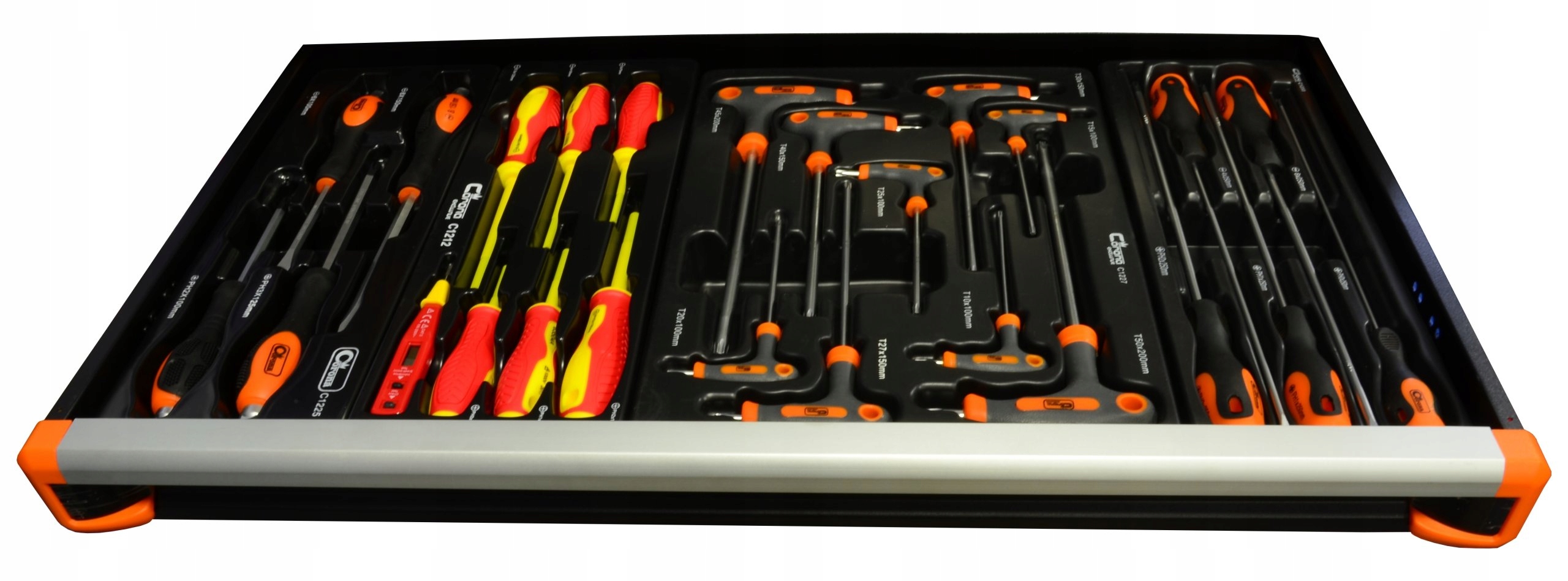 Вкладиш містить набір торцевих викруток Corona Exclusive розміром 6-13 мм. Вони виготовлені з міцної хромованадієвої сталі, що робить їх дуже довговічними.