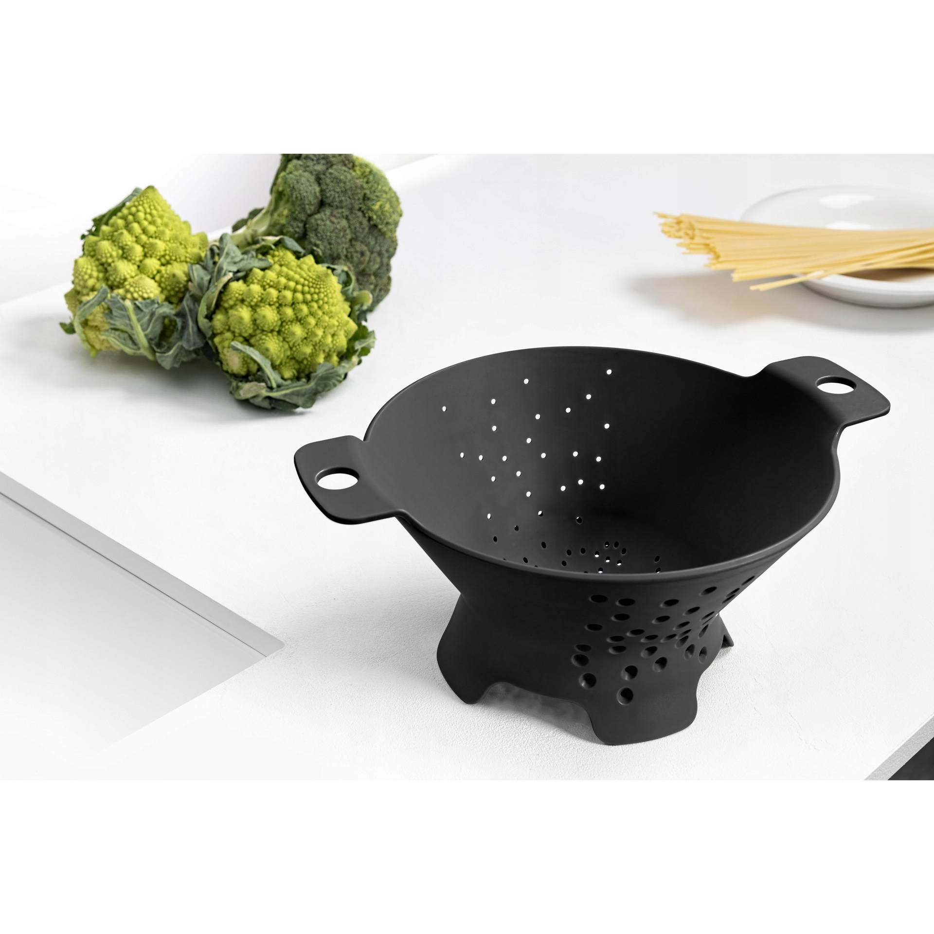 durszlak cosmo blim plus був розроблений з урахуванням незвичного розподілу отворів, які дозволяють найкраще вилити макарони. Діаметр отворів менший, ніж всередині, і ширше на зовнішній стороні друшляка. Завдяки цьому, зливна вода не бризкає вбік, а головне, спагетті не виходять з дірок поза друшляком . є просторим і має стабільну базу з чотирма опорними ніг . Відсутність внутрішніх отворів на сторінках ручками захищає ваші руки від води або пари, а зручні кроки з отворами для пальців дозволяють їй ефективно та безпечно переміщувати.