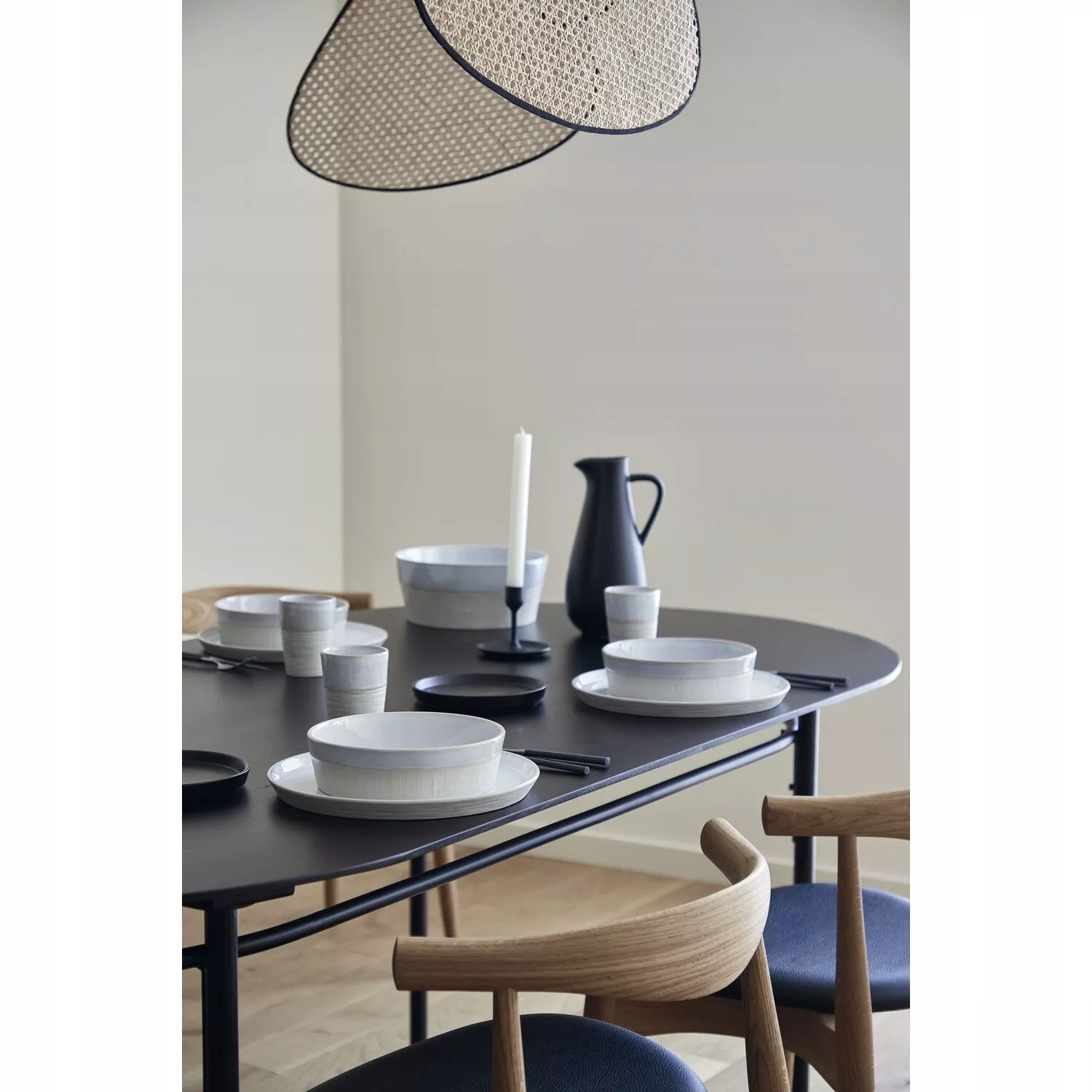 Тож ці моделі вас вразять. Стільки елементів, які можна поєднувати один з одним - з чорними елементами, круглими елементами, овальними елементами з піднятим краєм! Мрія кожного господаря. Кам'яний посуд трохи підходить до стилю бохо. Завдяки цьому він чудово вписується в інтер'єр з природними елементами. Посуд дуже міцний, повністю засклений і його можна мити в посудомийній машині. Ви також можете придбати їх для своїх ресторанів.