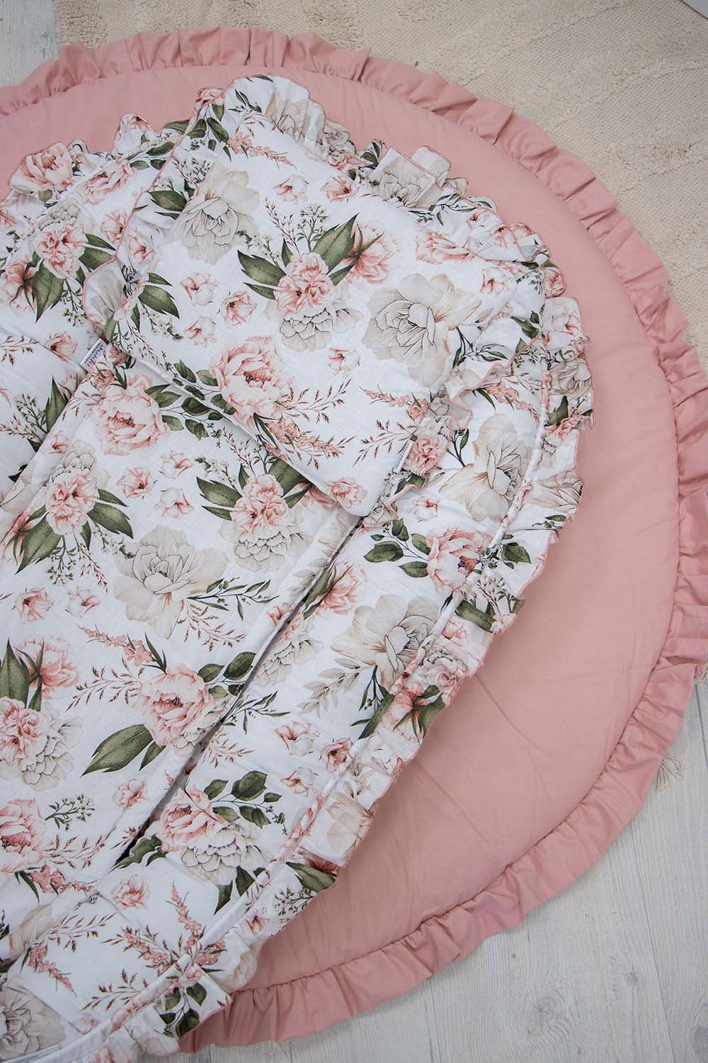 ☑️ Гніздечко також ідеально підходить для немовлят старшого віку, стаючи ідеальним місцем для ігор, лежання на животику та перших вправ - підняття голови або брязкальця, що лежать у його досяжності. Послаблення ниток дозволяє використовувати кокон як пеленальний столик.