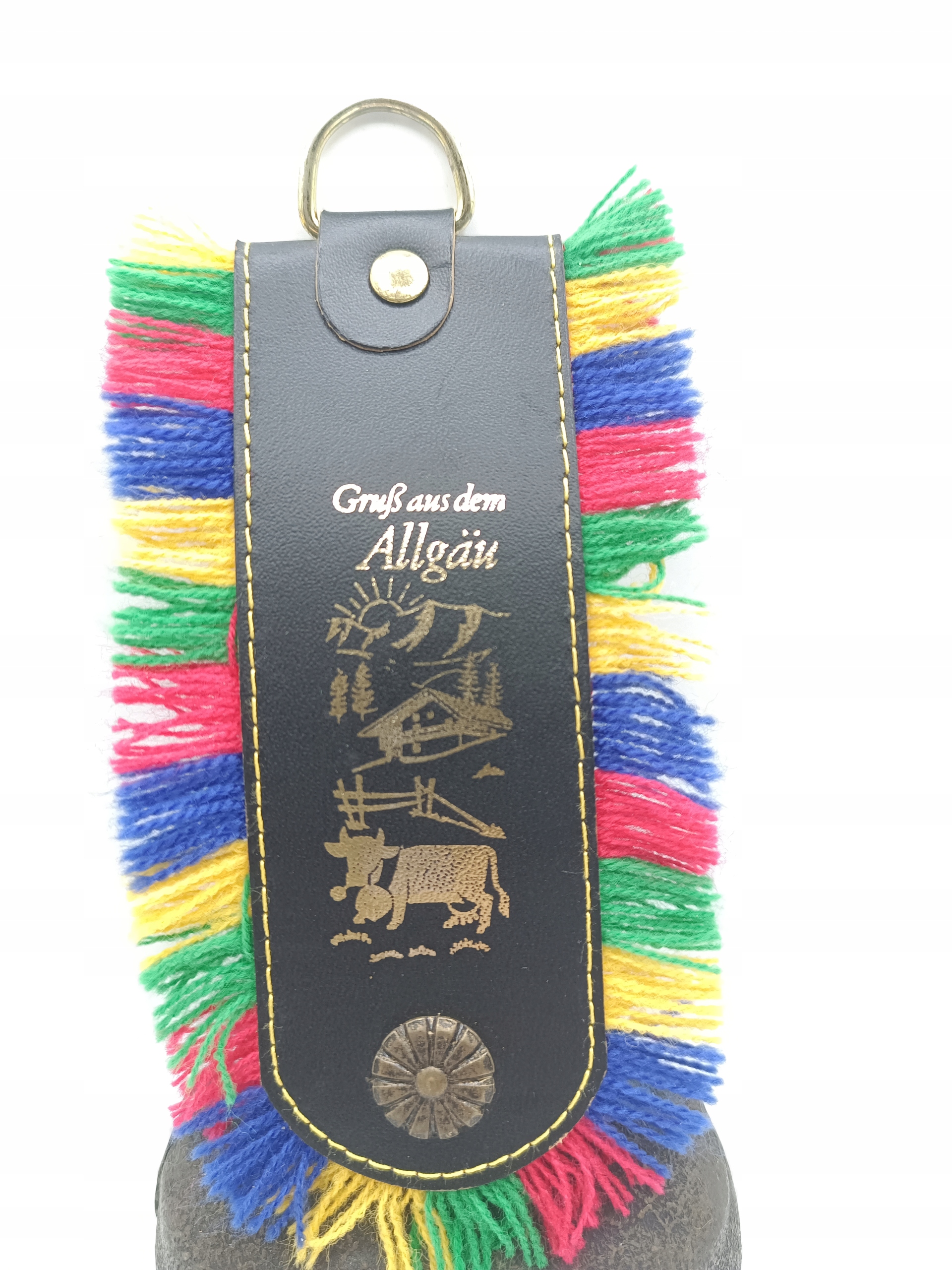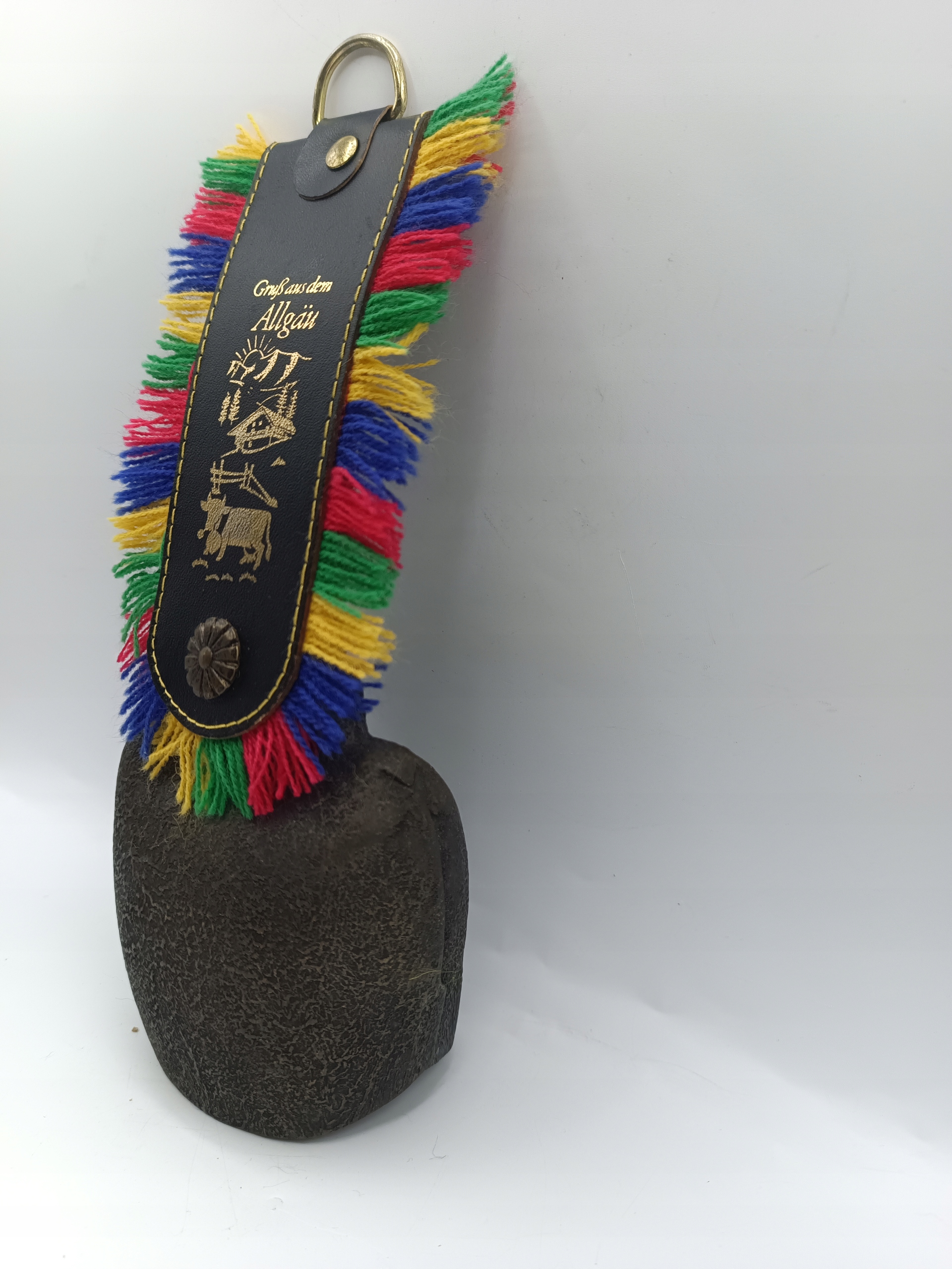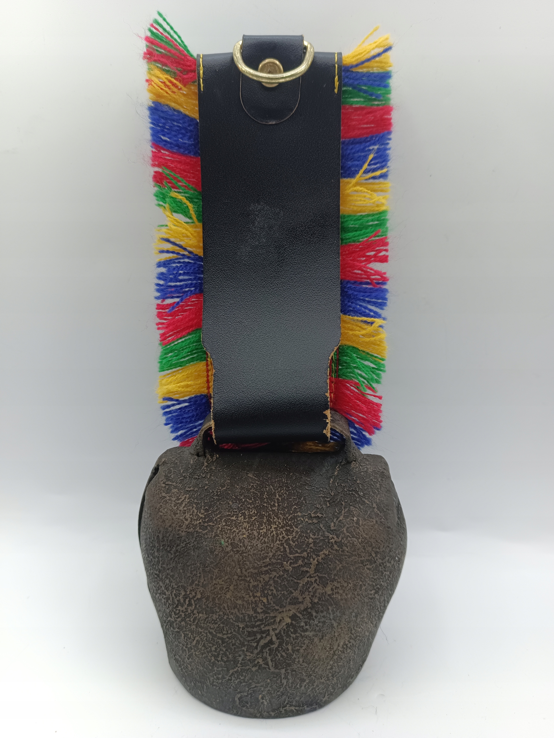 Сам дзвоник виготовлений з бронзи, серце виготовляється із заліза - дуже приємний звук, верхня прикраса виготовлена з латуні, ремінь виготовлений зі шкіри, шерстя. Він вже старий, дзвоник виглядає так само приємно в реальному житті, як на фотографіях.
