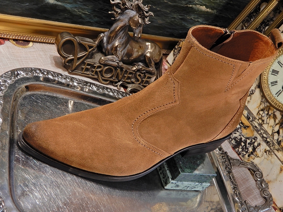 Запрошуємо вас придбати гарне взуття, виключно гарного кольору, зроблене зроблене з божевільної натуральної шкіри, також з внутрішньої обробки натуральною шкірою. Ця нова шкіра ідеально вписується в «ковбойську атмосферу». Взуття підходить для людей з високим супінатором і надзвичайно зручне. Гнучка підошва з відмінної гумової суміші. З доглядом проблем немає, бажано змастити взуття 2 рази на рік :) Взуття на природі гарніше ніж на фото. Я сама їх ношу, ви бачите як вони виглядають на моїй нозі. :)