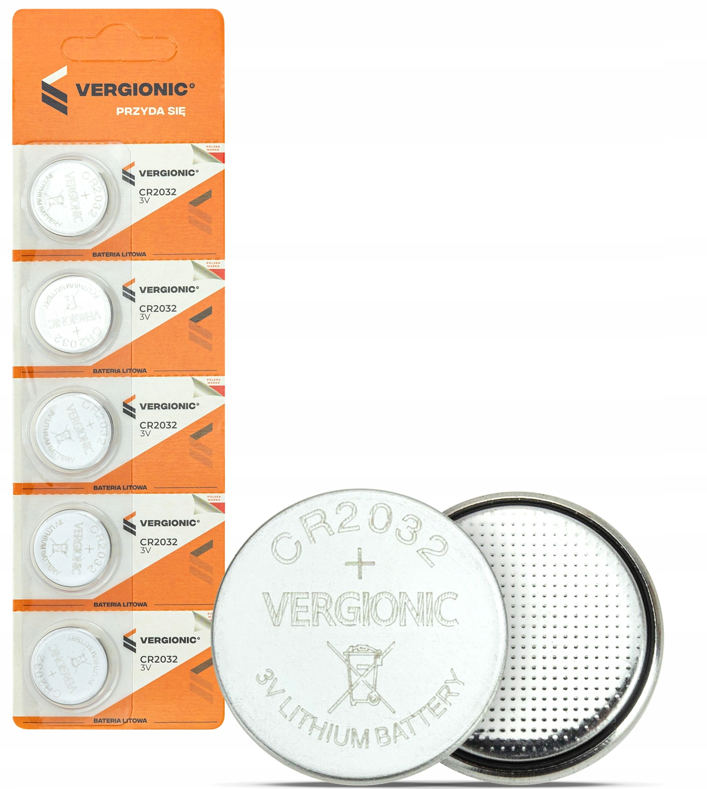 Кнопкові батарейки CR2032 від польського бренду Vergionic - це продукт, виготовлений з високоякісних матеріалів. Їх потужність перевищує якість найпопулярніших брендів на ринку. Літієві батареї служать набагато довше, ніж звичайні вугільно-цинкові. Вони не містять шкідливих речовин. Кнопкові батареї характеризуються: