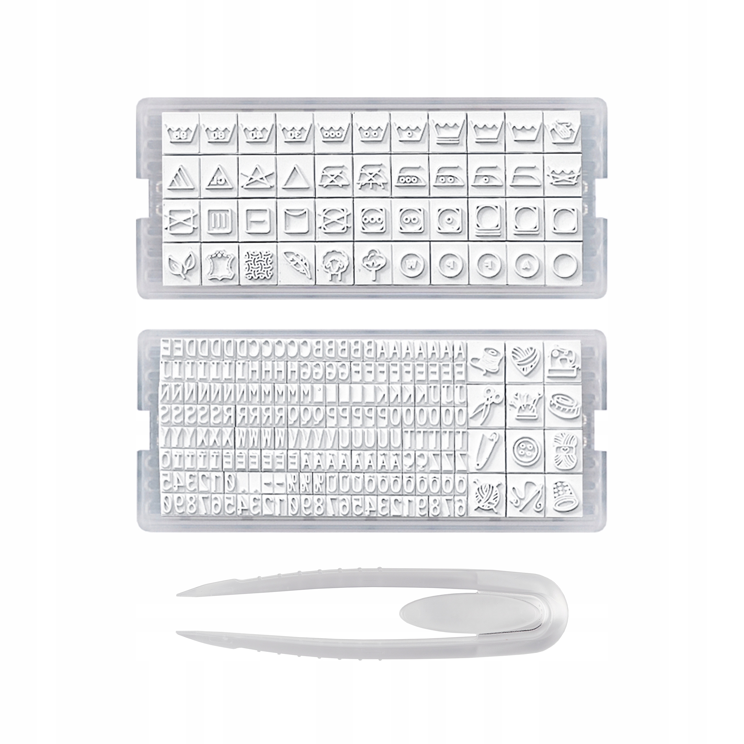 - 2 набори шрифтів (літери - без польських) символи, цифри, символи, піктограми та інструкції з прання та догляду)