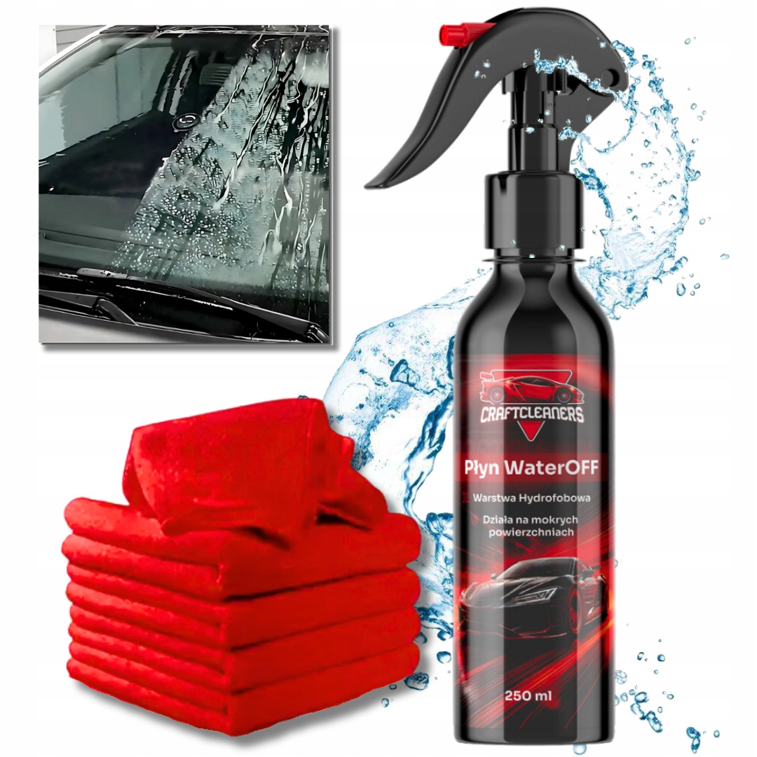 CraftCleaners WaterOFF250 Невидима гідрофобна рідина для склоочисників + 5× МІКРОВОЛОКНА PROFESSIONAL 30см х 30см ЧЕРВОНА