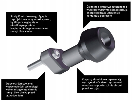 Набір аварії має двозонну структуру - зовнішня зона поглинає енергію удару і вигини в суворо визначеній точці. Внутрішня частина - це правильне кріплення до оригінальних елементів мотоцикла - рамки або блоку двигуна. Сила гвинтів та їх ниток вибирають так, щоб не змусити нитку розбити або згинати рамку мотоцикла під час удару. Гвинти у внутрішній зоні мають набагато більший клас міцності (12,9), ніж гвинти у зовнішній частині (8,8). Таким чином Реннер усунув основний недолік інших аварійних прокладок, доступних на ринку. 4 Основна його роль виконується, оскільки вона відволікає значну частину енергії, коли мотоцикл потрапив у асфальт.