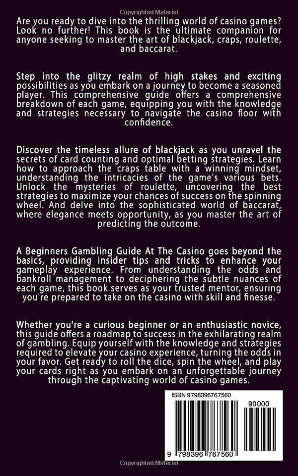 4 Оводіть мистецтво азартних ігор з впевненістю та вишуканістю! ВСТУП А 4 на 1 Книжковий пакет! Посібник для азартних ігор для початківців у казино - дізнайтеся, як грати в блекджек, лайки, рулетку та баккаратЛаскаво просимо до свого остаточного керівництва для початківців по азартних іграх у казино! У цій вичерпній книзі ми створили ресурс єдиного зупинки, щоб розширити вас знаннями та навичками, необхідними для перемоги в підлозі казино. Розблокуйте світ хвилювань та можливостей, коли ви дізнаєтесь про Ігри в казино, такі як Blackjack, Craps, Routte та Baccarat. Попрощайтеся з кліше підкреслених та привіт до хвилювання інформаційного геймплея! У цій книзі ви відкриєте: Основні правила гри: Демстифікуйте ігри з чіткими та стислими поясненнями блекджеку, лайків, рулетки та баккара, що робить вашу подорож у казино безпроблемним та приємним. Стратегічні відомості: Розкрийте виграшні стратегії та максимізуйте свої шанси на успіх у кожній грі, тож ви можете залишити казино з посмішкою та повним гаманцем. Методи управління грошима: Дізнайтеся, як розумно керувати своїми азартними банкролами, уникаючи підводних каменів, які можуть призвести до втрат та забезпечення збалансованого та відповідального підходу до ігор. Етимологія та веселі факти: зачаровуйте своїх колег -гравців цікавими історичними ласощами та вигадливими фактами про ігри, які ви граєте, піднімаючи свій соціальний досвід у казино. Впевненість і порив: здобувайте впевненість, щоб взаємодіяти з торговцями та колегами з етикетами та витонченістю, посилюючи ваш загальний досвід казино та залишаючи позитивне враження на інших. Вирушайте у свою подорож, щоб стати генеральним гравцем казино, озброєним навичками та знайте, щоб орієнтуватися у світі азартних ігор, як професіонал. Ця книга розроблена для початківців, забезпечуючи плавний і корисний вхід у хвилюючу царство підлоги казино. Незалежно від того, чи ви новачок у азартних іграх чи прагнете вдосконалити свої навички, "Посібник для азартних ігор для початківців у казино" - це остаточний супутник, щоб підняти свій геймплей та перетворити вас на головного гравця казино. Не пропустіть можливість вирівняти свої пригоди в казино - отримайте свою копію сьогодні та сприймайте хвилювання гри!