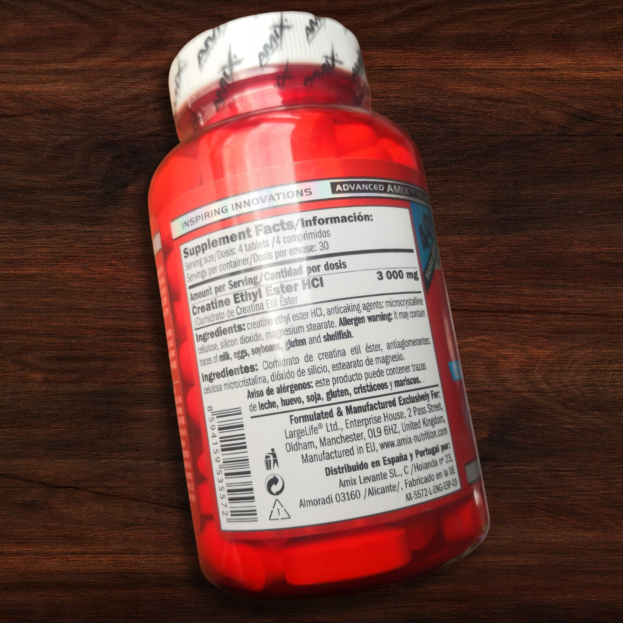 Amix створив революційну добавку, яка в 40 разів ефективніша за звичайний моногідрат креатину. Цей продукт являє собою креатин, підданий процесу етерифікації, завдяки чому він набагато краще справляється з кислим середовищем організму і не перетворюється на біологічно неактивну форму креатину.