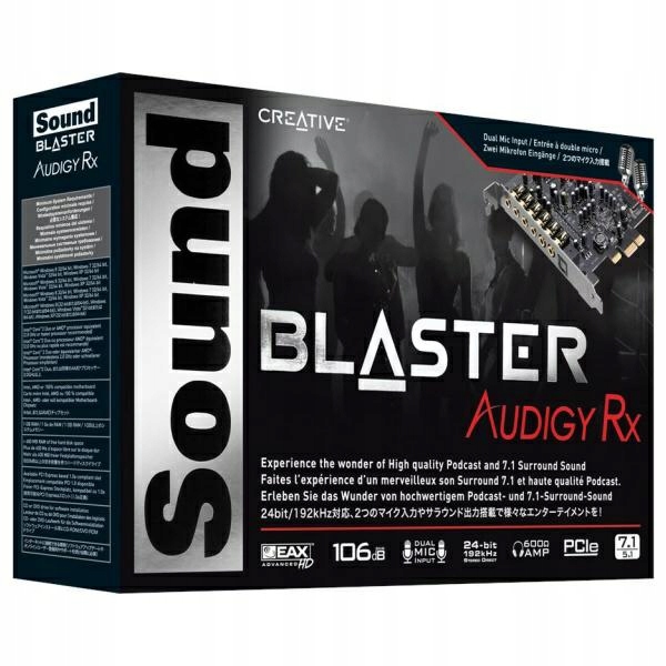 Sound Blaster Audigy RX - це вдосконалена звукова карта, яка є ідеальним розширенням основної звукової системи на основній тарілці, щоб переконатися, що просторовий звук з якістю кіно. Розширена система, розроблена для обробки за допомогою нашого легендарного механізму перегляду EAX, означає, що картки Sound Blaster Audigy RX можуть очікувати ідеально багатоканального звуку 7.1. Картка забезпечує співвідношення сигналу до шуму 106 дБ, а панель управління звуковим Blaster Audigy RX для ПК доступна в наборі, яка пропонує повне управління всіма налаштуваннями звукової картки.