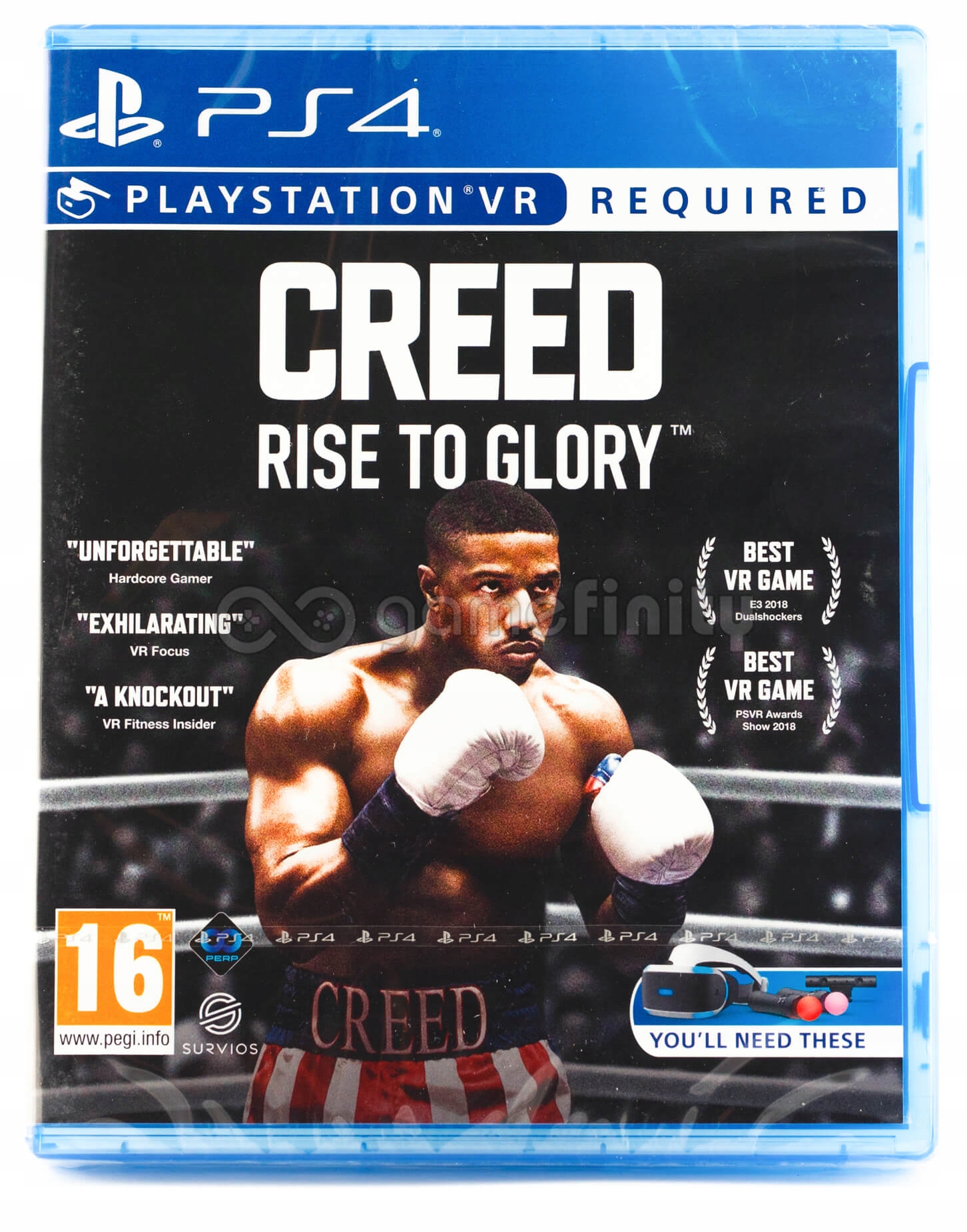 Creed: Rise to Glory — це спортивна гра, у якій гравці можуть битися на боксерському рингу. Робота студії Survios створена для платформ PS4 і PC і гарнітур віртуальної реальності. Сюжет Як випливає з назви, «Крід: Підйом до слави» заснований на фільмі «Крід: Відродження легенди». У режимі кар'єри ми граємо в ролі боксера Адоніса Кріда, спостерігаючи його кар'єрний шлях від вуличного любителя до професійного бійця; герой тренується під пильним наглядом Роккі Бальбоа – вигаданого боксера та дворазового володаря титулу чемпіона світу у важкій вазі. Варто зазначити, що боксер, якого зіграв Сильвестр Сталлоне, став доступним як ігровий персонаж.