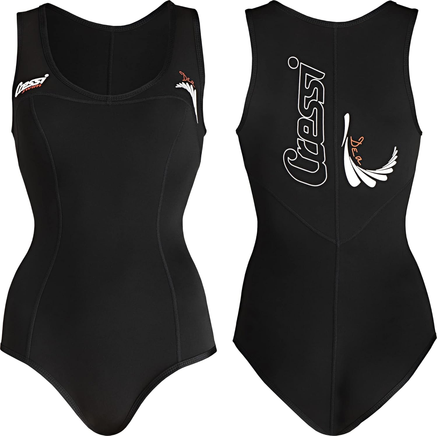 Один купальник для жінок, розроблений в Італії брендом Cressi, який створює обладнання з високою якістю водного спорту з 1946 року. Зроблено з м'якого неопрену товщиною 1 мм, він ефективно захищає від холоду і забезпечує комфорт у воді при 19 ° С до 25 ° С спеціальний зріз і гнучкий матеріал забезпечують свободу руху, що робить його ідеальним вибором для плавання, дайвінгу, водних гімнастів.