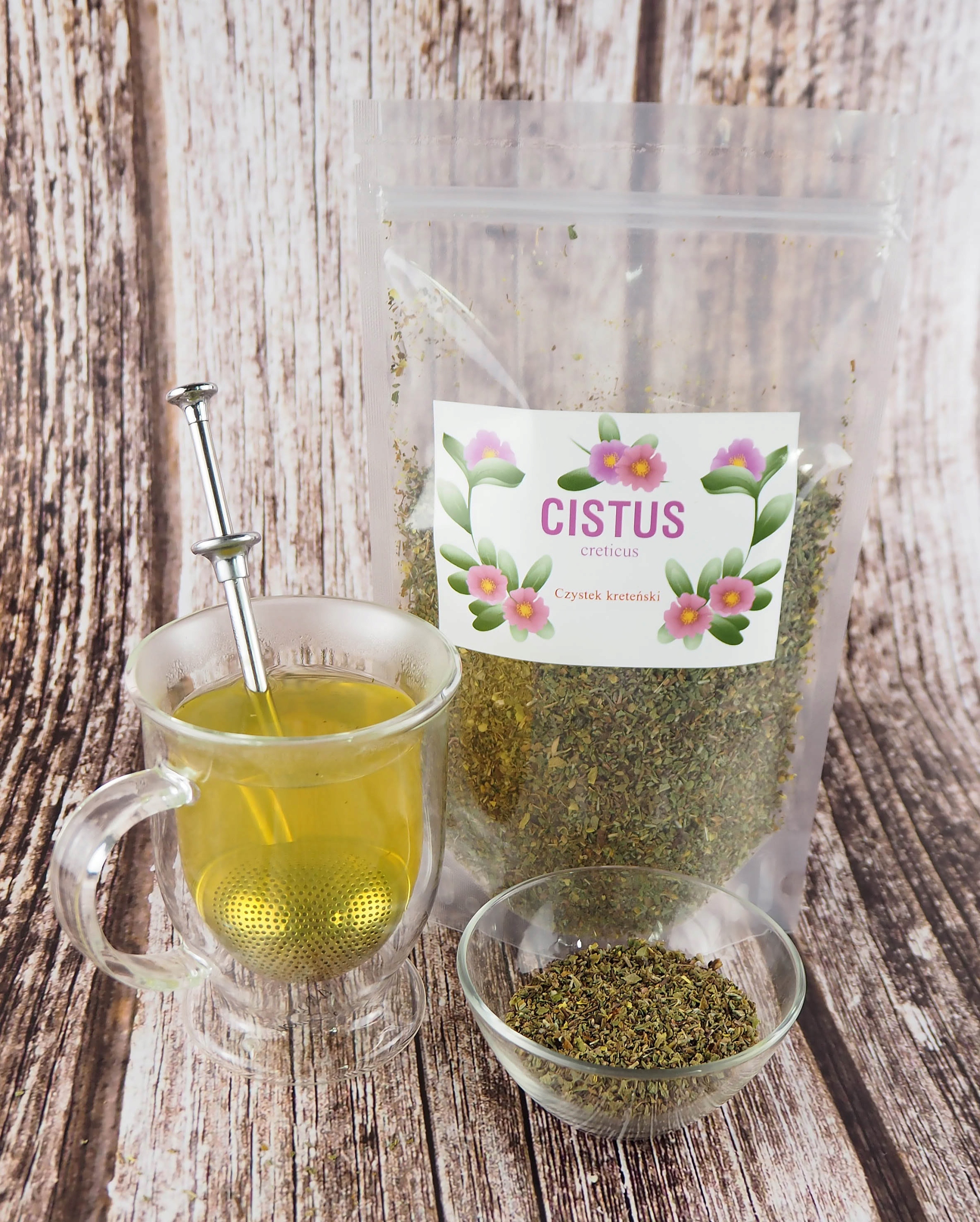 очищення коротке (до 1 м у висоту), вічнозелений чагарник, що належить родині чистки (Cistaceae). Тип CiStus включає близько 20 видів, включаючи численні підвиди, що відрізняються морфологічно та фітохімічно. Найпопулярнішим з них є Cretan Puitge, яку також називають сірим (сірим) чисткою. Очищення густо добре перекривається сонячно, тепло, в районі Середземномор'я, Західної Азії (Греція, Туреччина, Албанія) та Північної Африки. Очищення, що складається з листя та квітів, вважається продуктом найвищої якості. Кроки вважаються менш цінними. Традиції використання чистки широкі та довгі. Він уже був відомий у Стародавній Греції, тому, незважаючи на сильне збільшення інтересу в наші дні, це не нове відкриття. Використовується в традиційній балканській, грецькій та Близькій Східній (переважно турецькій) фітотерапії.