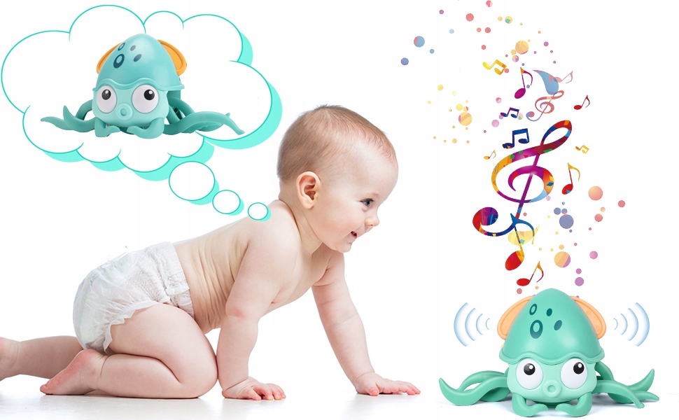 🦑🦑 【Музична іграшка з електричним восьминіжком】 Ця музична іграшка для дітей має цікаві кольорові комбінації, а милий дизайн восьминога легко привертає увагу дітей і заохочує їх повзати чи ходити з восьминогом. Чудово підходить дітям для розвитку та вивчення дрібної моторики та координації рук і очей.