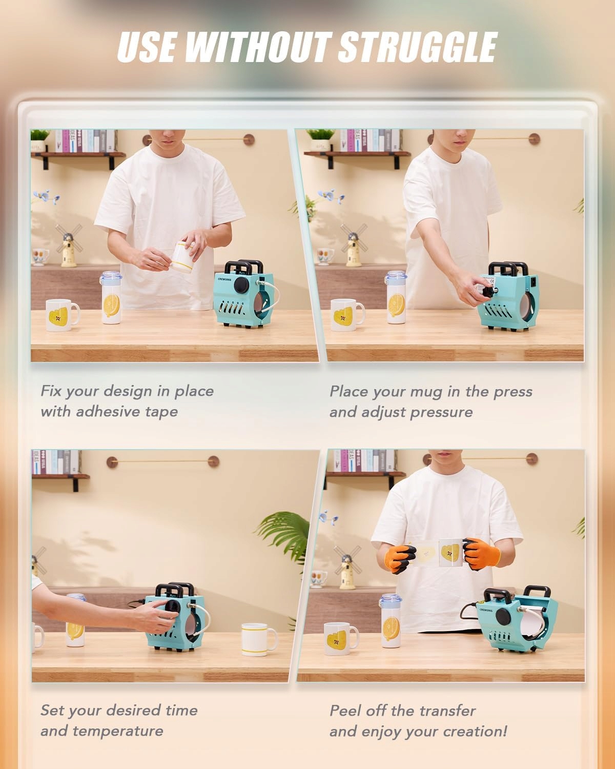 Надійна безпека - Цей перенесений прес для чашок і чашок оснащений силіконовим килимком, стійким до високої температури, для навіть прасування та відмінних результатів. Він доставляється з парою рукавичок, тож ви можете безпечно виконувати свою роботу