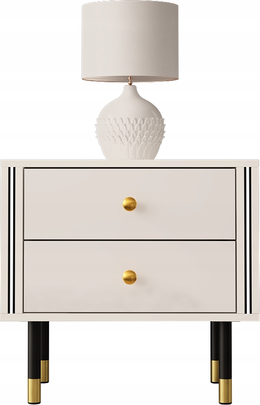 Ніжкова тумбочка — універсальна пропозиція для кожної спальні. Однотонний колір меблів - це цікаве поєднання з масивними сталевими ніжками. Мінімалістичний стиль кабінету підкреслюється його делікатним вертикальним підсвічуванням.
