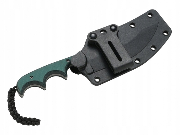 Мінімалістичний CRKT, як випливає з назви, має мінімалістичну, просту структуру, при цьому гарантуючи максимальну зручність використання. Компактний розмір ножа та низька вага робить його ідеальним вибором для повсякденного зносу. Це сприяє пластикову піхву в наборі, оснащеному мотузкою з обмежувачем, завдяки якому ми можемо комфортно повісити продукт на шиї. Крім того, виробник прикріпив затискач, який дозволяє переміщувати набір поясом або обладнанням. Виготовлення 8cr13mov з одного шматка нержавіючої сталі збільшує міцність цієї невеликої конструкції. Лезо з характерною кривизною над задньою лінією завершено методом Beadblast, що залишає матове покриття. Такий профіль леза буде добре впоратися з більшістю завдань і задовольнив будь -який виклик як у полі, так і вдома. Гофрована спина леза - це стабільна підтримка пальця, що підвищує безпеку використання. Зелене волокно -няття волоконної обшивки профілюється під рукою користувача затискання, що забезпечує відмінний контроль над інструментом і дозволяє точно працювати. В кінці захоплення декоративне ключове кільце, виготовлене з нейлонового кабелю, що сприятиме витягуванню ножа з піхви.