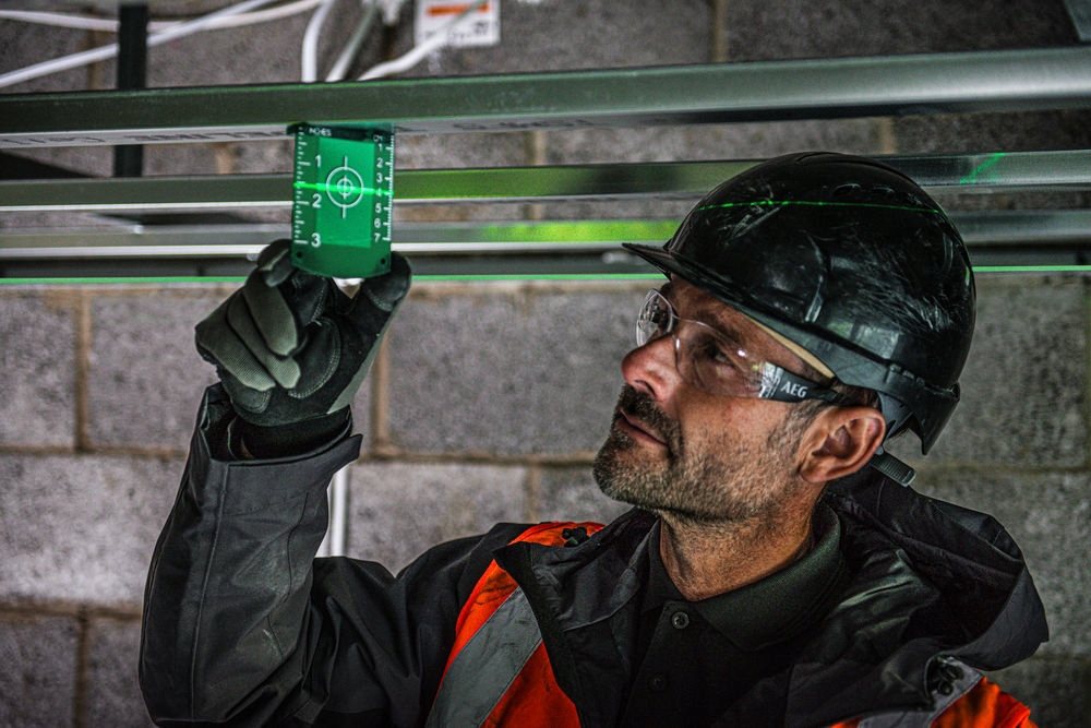 Крос-лінійний лазер CLG220-K від AEG PowerTools, що випромінює зелений промінь, ідеально підходить для всіх будівельних і оздоблювальних робіт. Робочий діапазон 20 м дозволяє працювати навіть у великих приміщеннях.