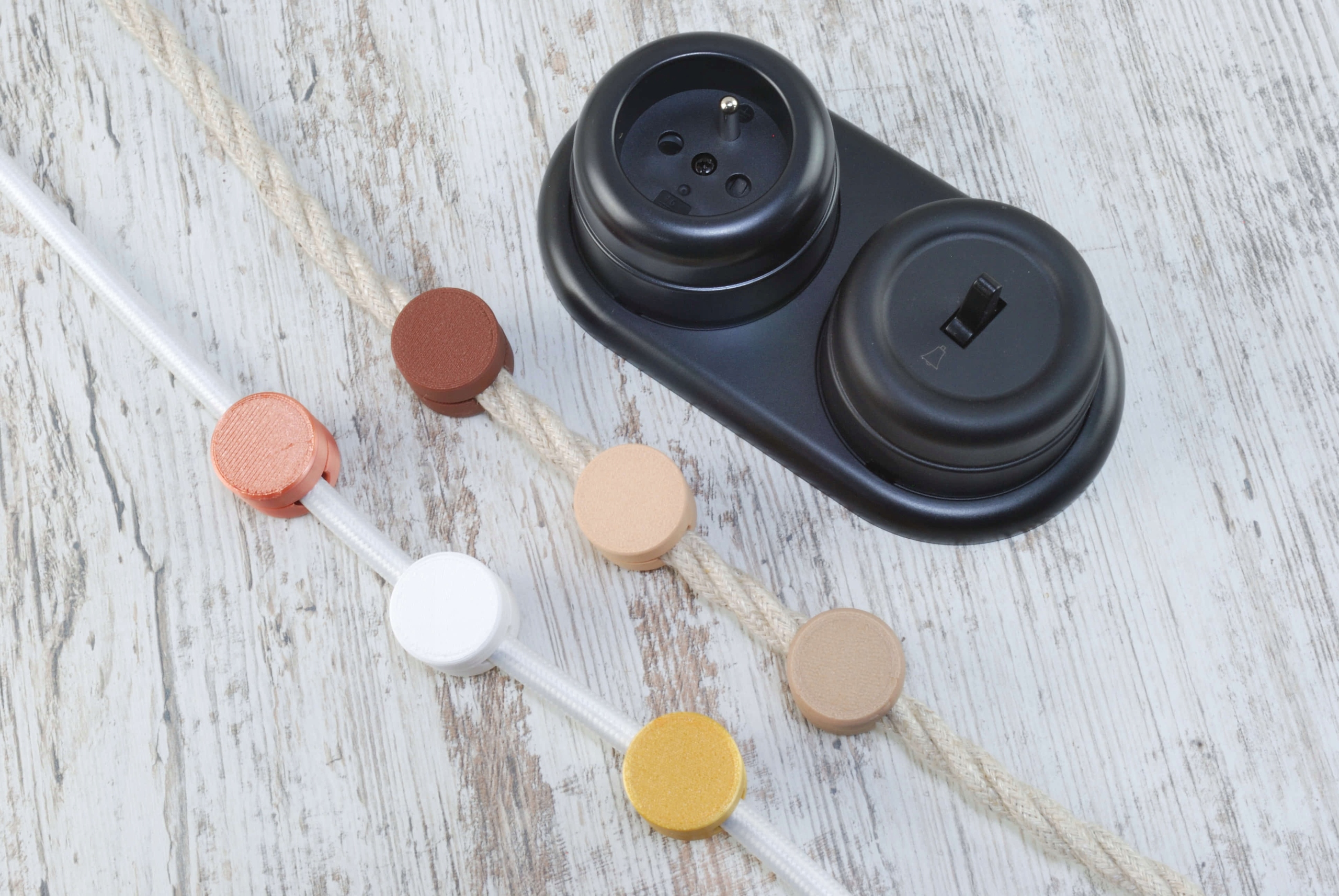 Вибирайте різнокольорові плетені кабелі та тримачі для вашої установки - ви знайдете все в нашій пропозиції