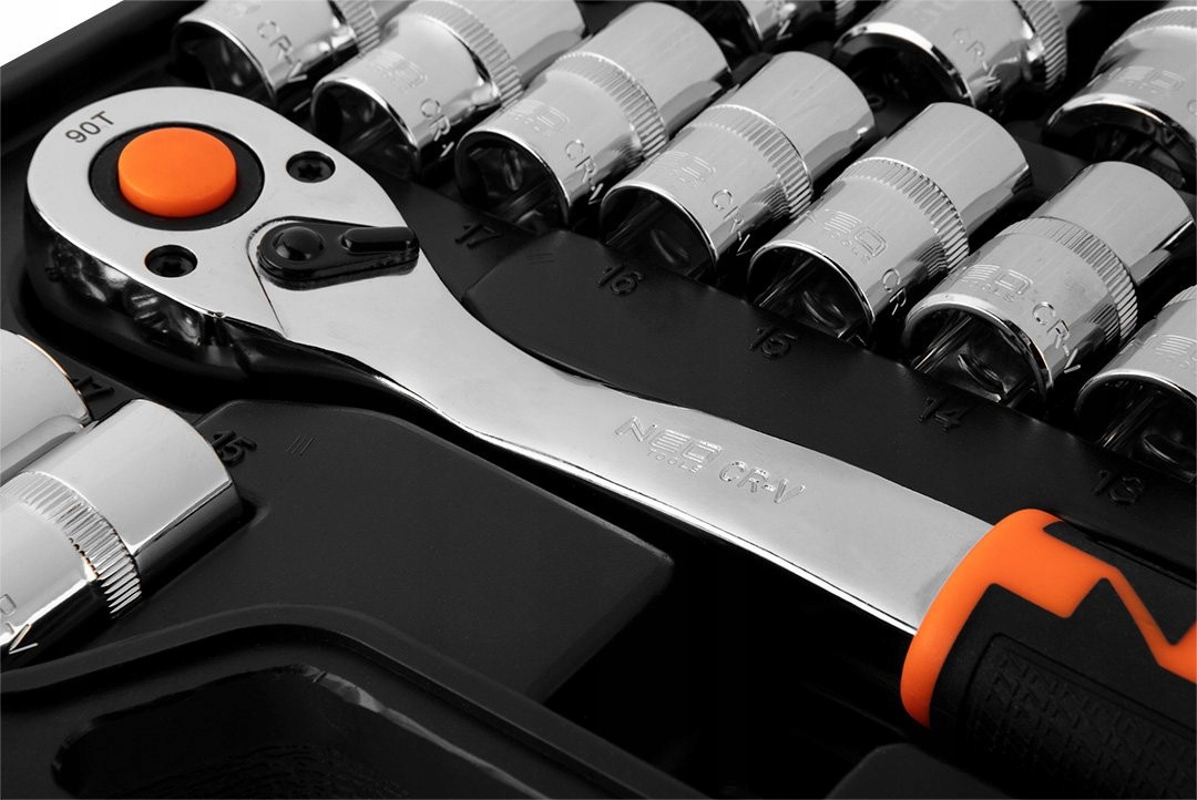 Ключі торцеві ½", набір 32 предмета, CRV, 10-038 NEO - це високоякісний набір із 32 виробів, який представлений у зручному пластиковому кейсі. У набір входять такі інструменти та аксесуари:
