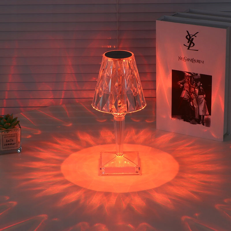 Подаруйте надзвичайну атмосферу своєму оточенню за допомогою кришталевої світлодіодної лампи. Вигини абажура спричиняють заломлення світла, які створюють УНІКАЛЬНИЙ МАЛЮНОК навколо лампи, змушуючи оточення виблискувати, як діамант!