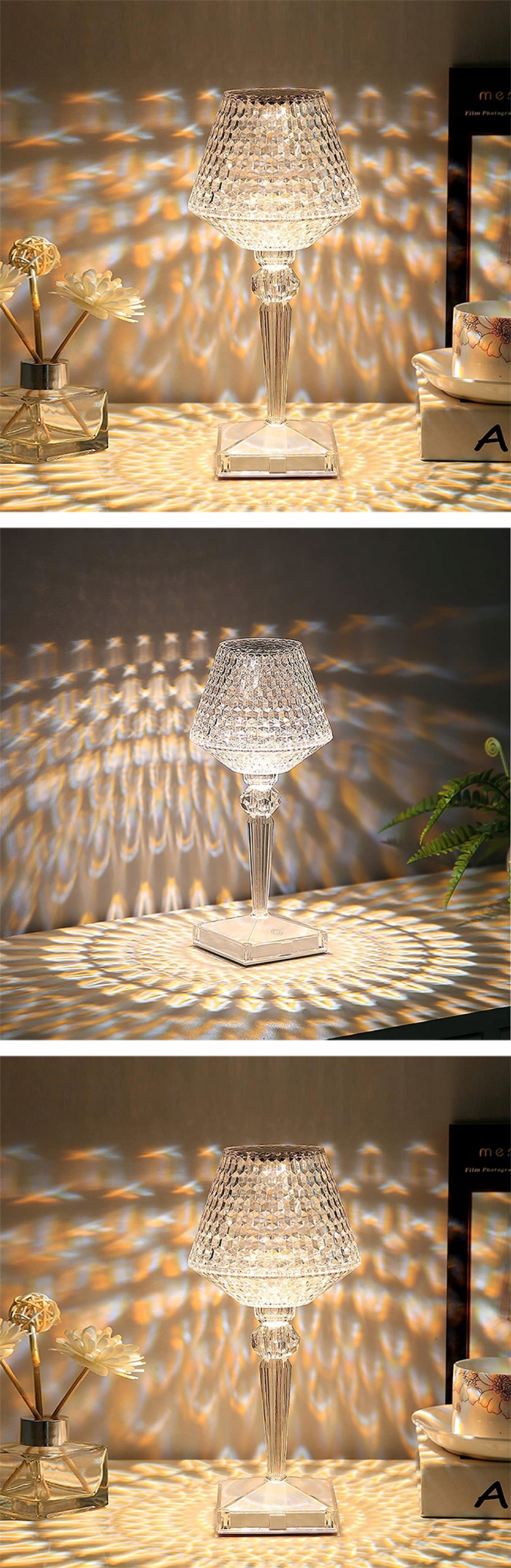 🌟 Концепція настільної лампи з кришталю — це простий і стильний сучасний досвід. За допомогою технології 3D світло і тінь переплітаються, а на робочому столі розквітає шар дивного і красивого світла. Діамантове навколишнє освітлення сповнене нескінченної романтики.