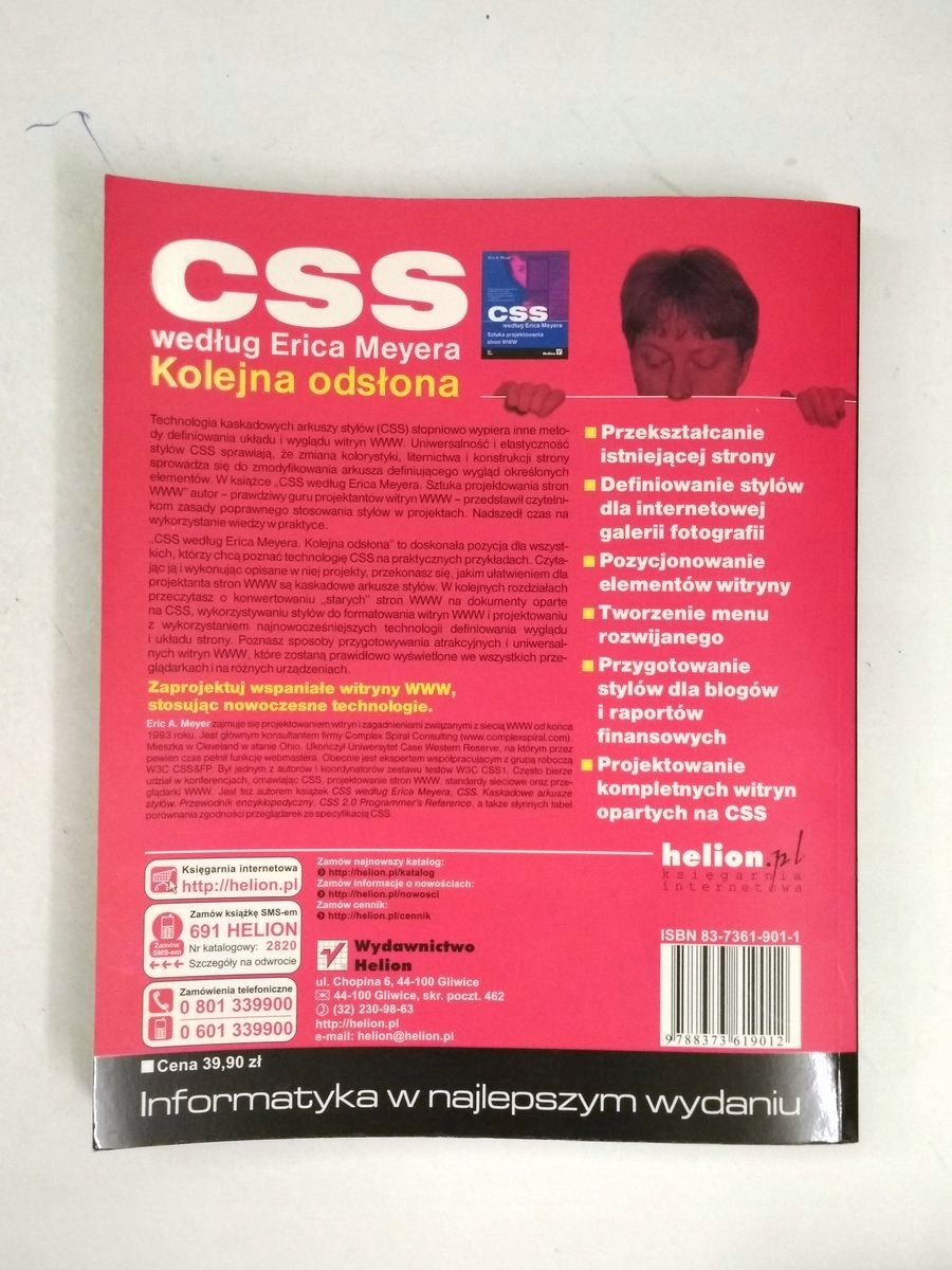 Оплачивая «CSS WEDŁUG ERICA MEYERA - MEYER» данный товар из каталога «Вебмастеринг», вы можете получить дополнительную скидку 4%, если произведете 100% предоплату. Размер скидки вы можете увидеть сразу при оформлении заказа на сайте. Внимание!!! Скидка распространяется только при заказе через сайт.