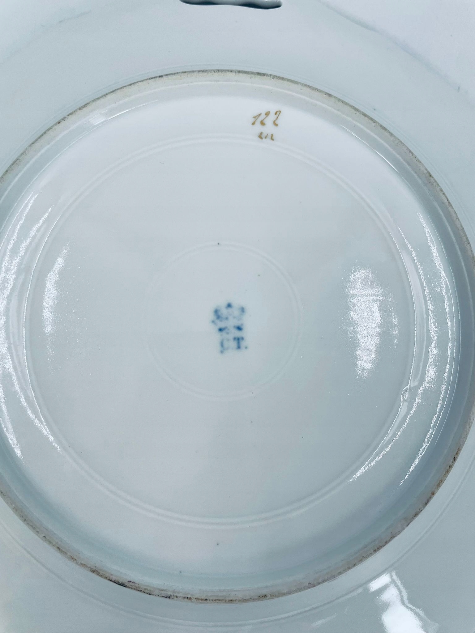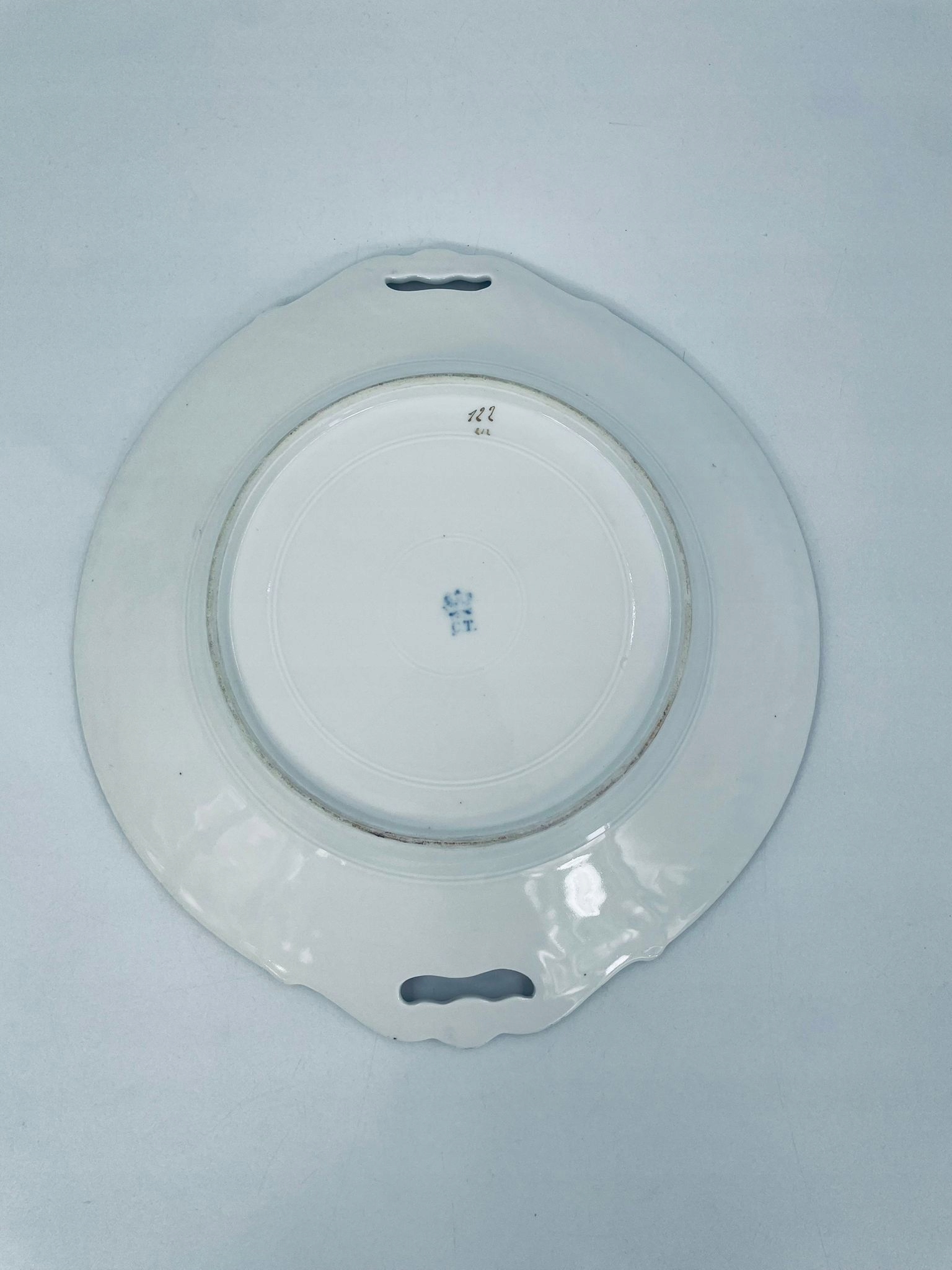 Красива Patera з етикетки Ct altwasser, виготовлена з білого порцеляни. Мотив на паштеті - це букет бузку та гортензії. Патера закінчила позолотою на березі та на декоративних ручках. Він має потертості в позолоті.
