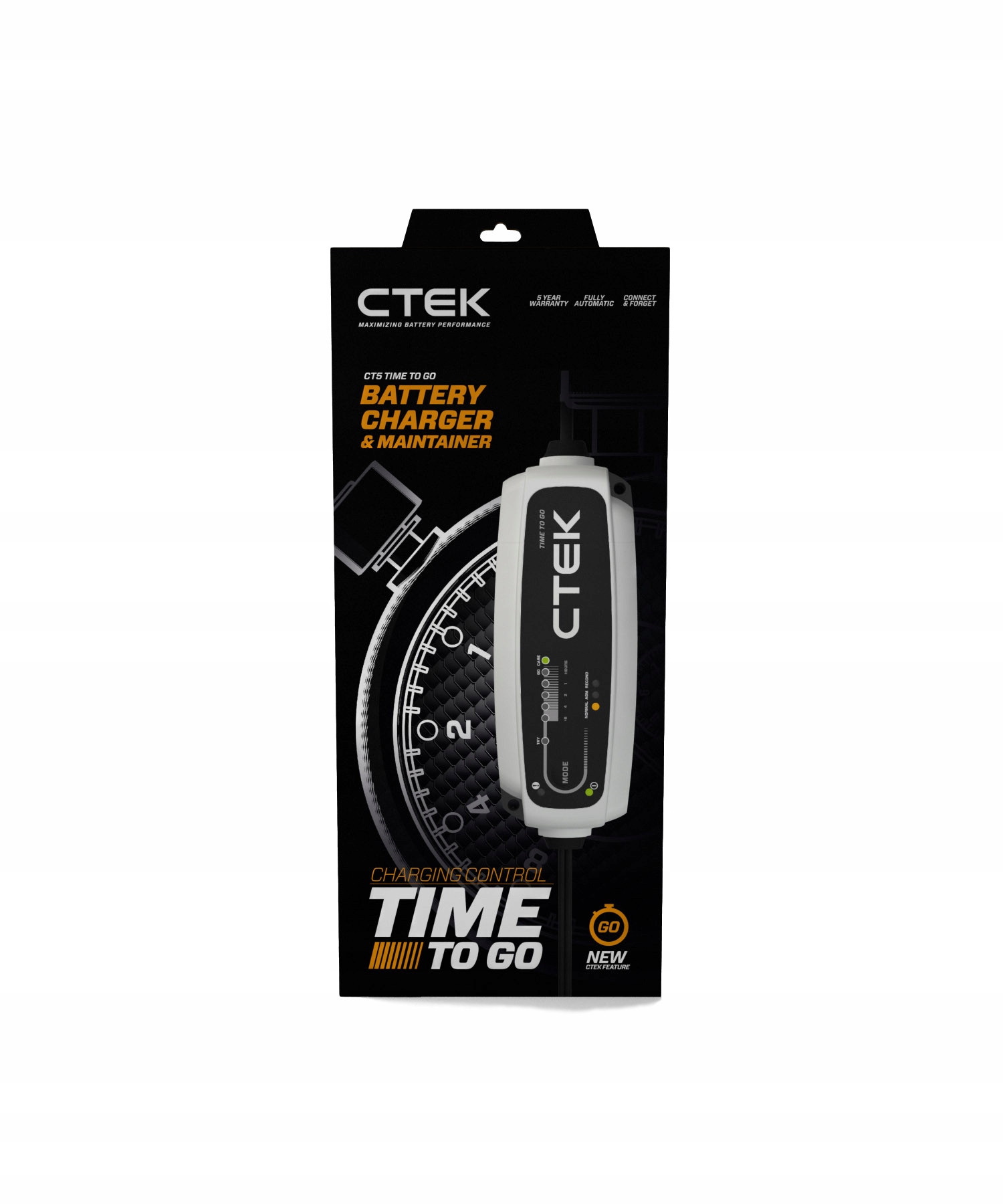 Зарядний пристрій CT5 TIME TO GO — це перший зарядний пристрій у світі, який точно знає, коли акумулятор буде заряджено та готово до використання. Світлодіоди вказують на різні етапи заряджання та тривалість (у годинах) підключення акумулятора до заряджання.