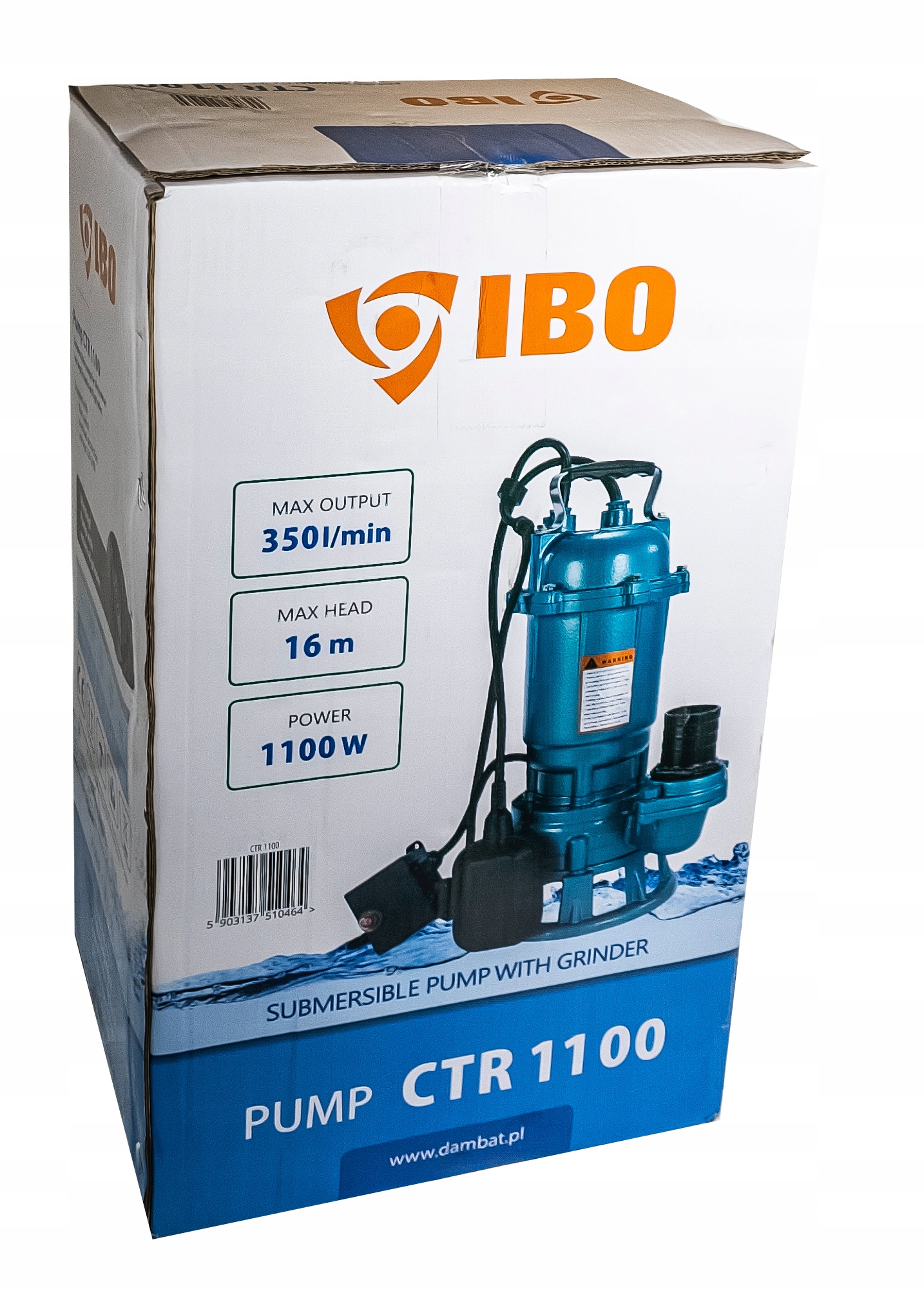 ГРУЗОВИЙ НАСОС CTR 1100 З ПОМОРЮВАЛЬНИКОМ, ПОТУЖНИЙ ДЛЯ БРУДНОЇ ВОДИ, Септик IBO, ПОТУЖНІСТЬ 1100ВТ, ПРОДУКТИВНІСТЬ 350л/хв, ВИСОТА ПІДЙОМУ 16м