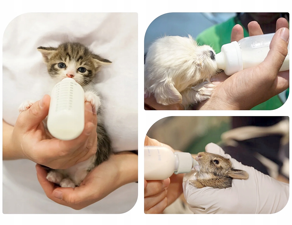 Набір для годування для маленьких тварин - це практичне та зручне рішення, створене для годування кошенят -новонароджених, цуценят, кроликів та інших маленьких ссавців. Пляшка з м'якими силіконовими сошками дозволяє легко подавати молоко або ліки, навіть найвибагливіші малюки. Набір включає пляшку, два додаткові силіконові соски, чистка кисті та пронизливий інструмент для пірсингу. 3,7 см