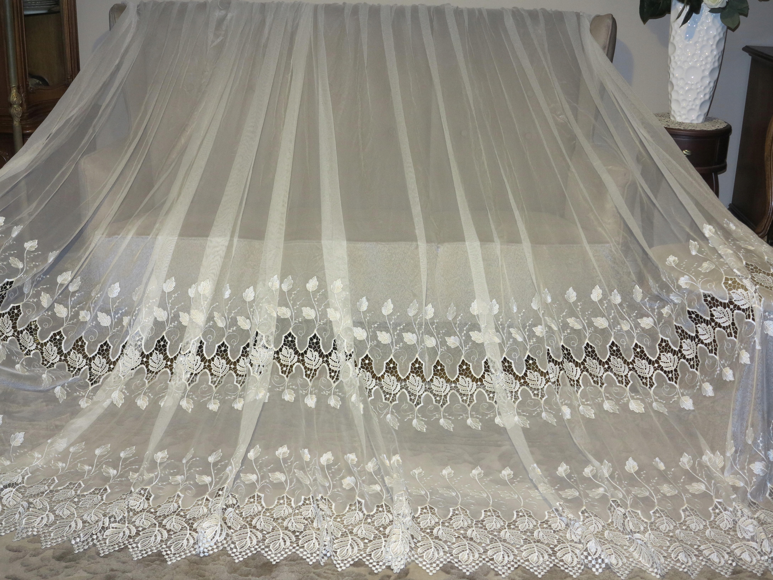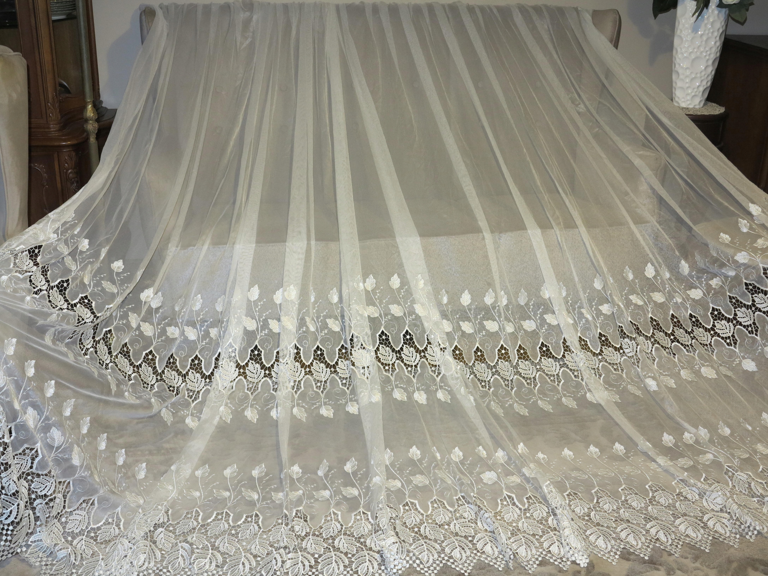 CUDNA FIRANA BOGATE PERŁOWE GIPIURY I HAFTY DOSKONAŁY STAN 461/240