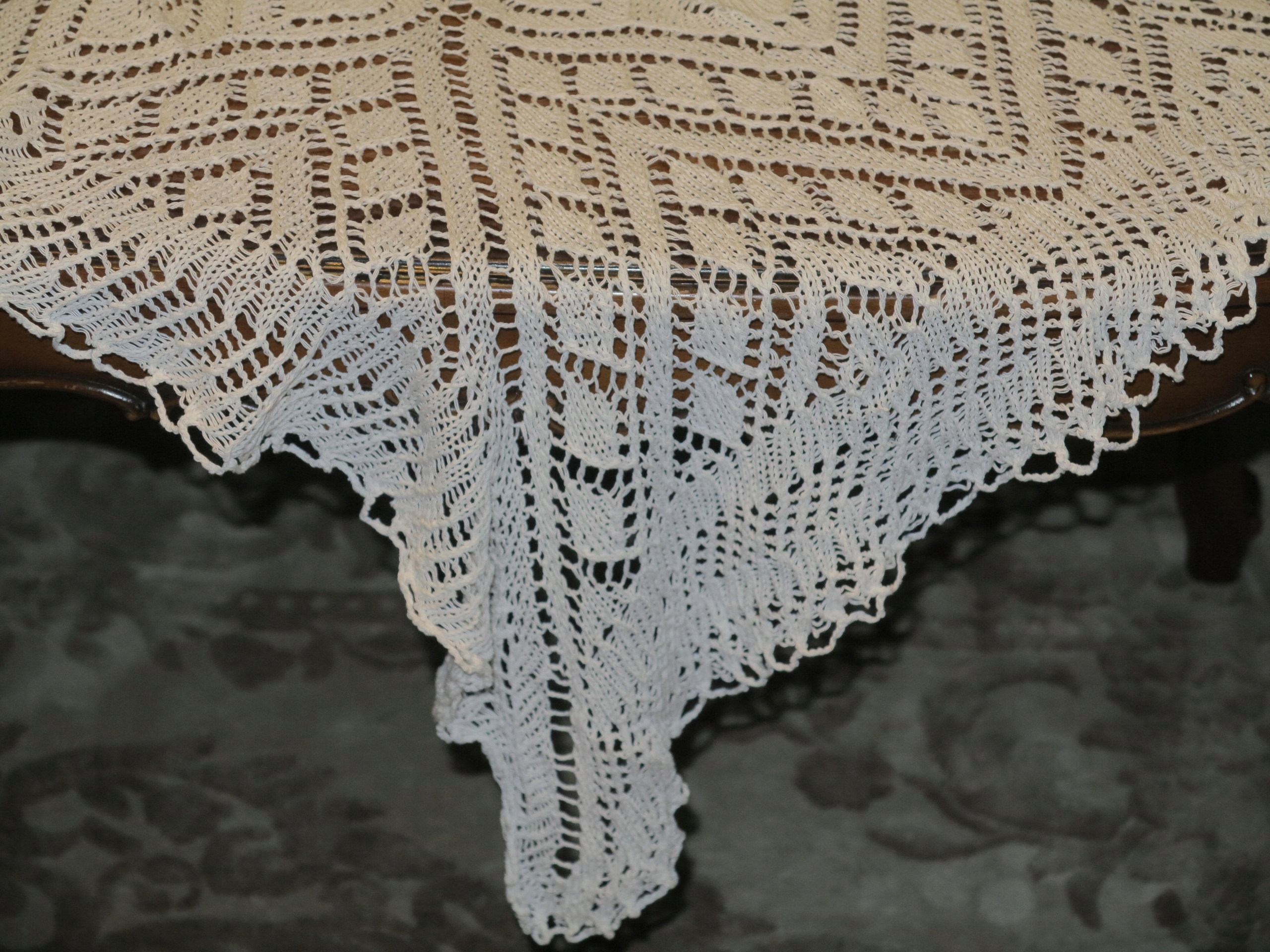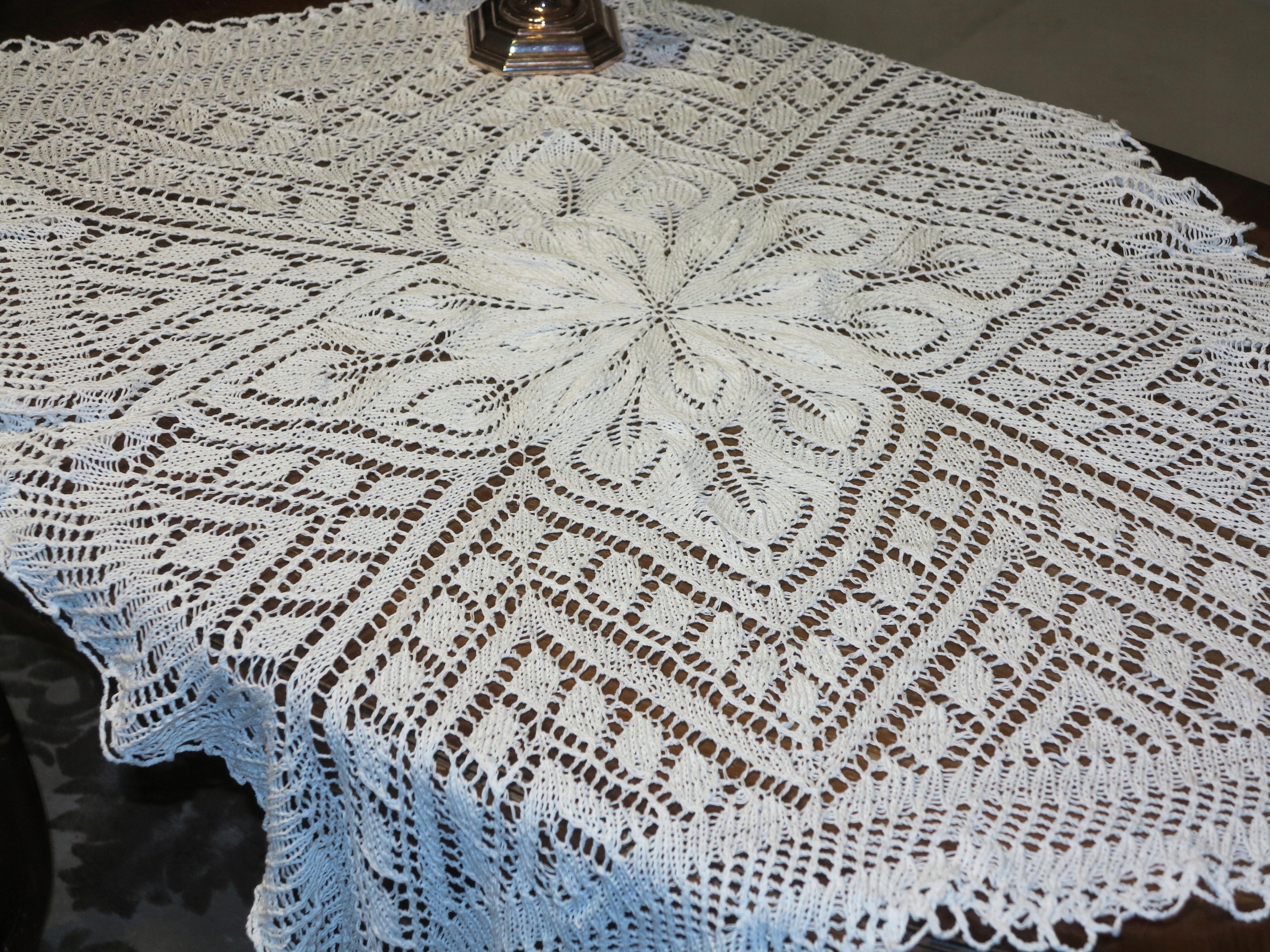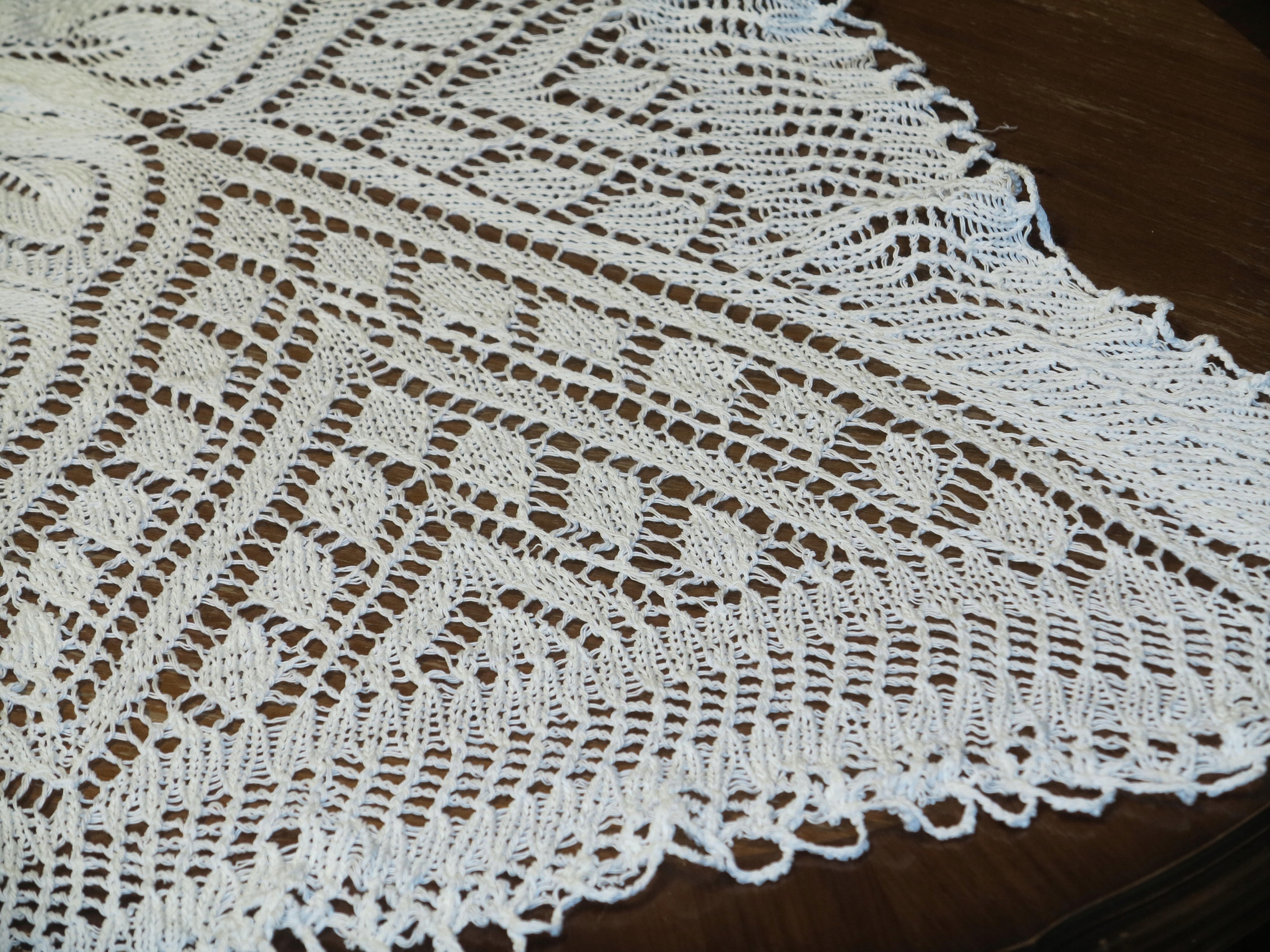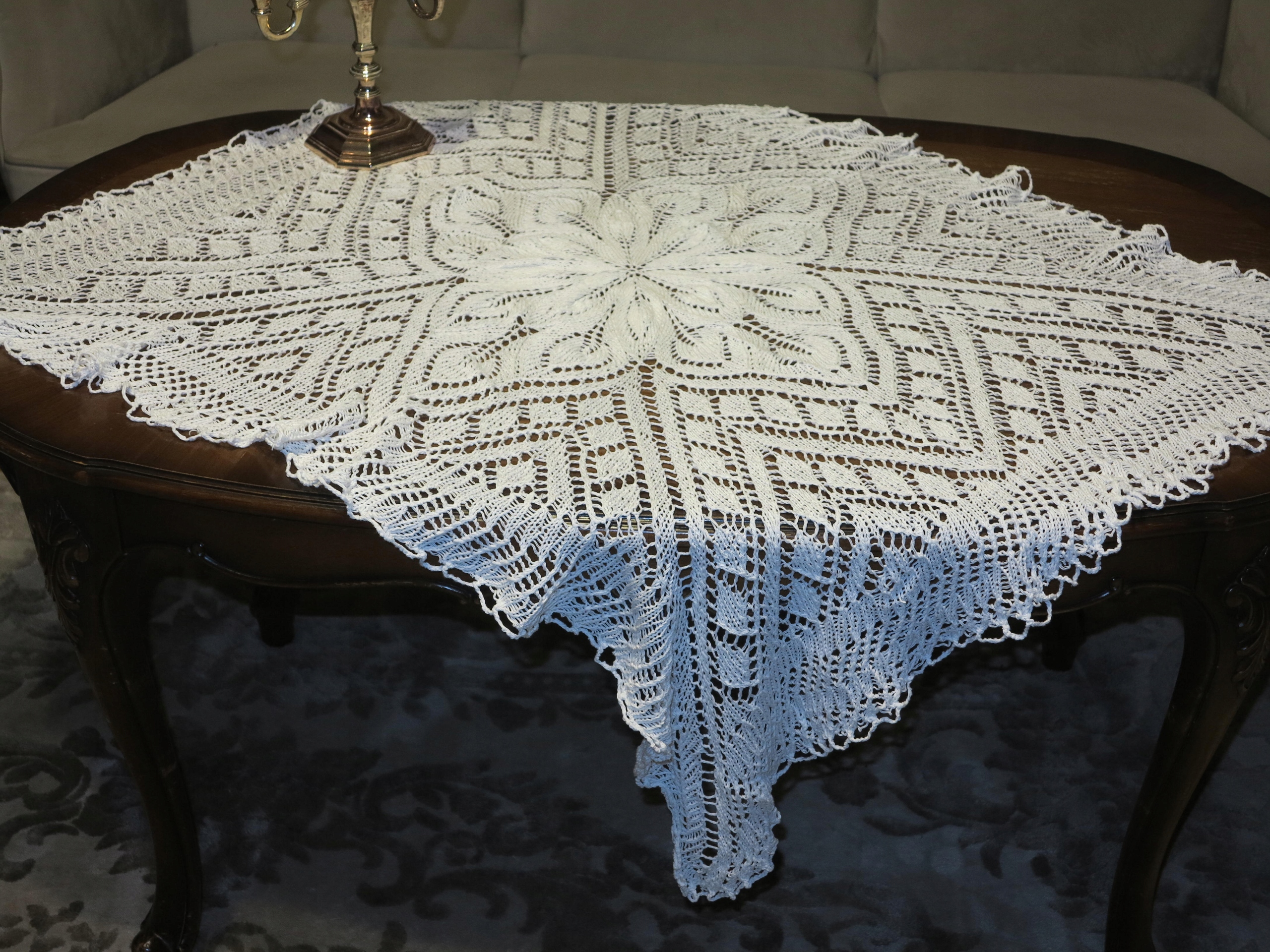ГАРНУ БІЛУ СКАТЕРТИНУ, ручного в'язання бавовняними нитками. З МОЄГО СПОСОБУ, СКАТЕРТИНА БУЛА У ФОРМІ РОМБА, ВОНА НЕ МАЄ ІДЕАЛЬНОЇ ПРЯМОКУТНОЇ ФОРМИ, АЛЕ ВОНА ДОБРЕ СЯДІТЬ НА СТОЛІ І ЦЬОМУ ЦІНА ЗНАЧНО НИЖЧА