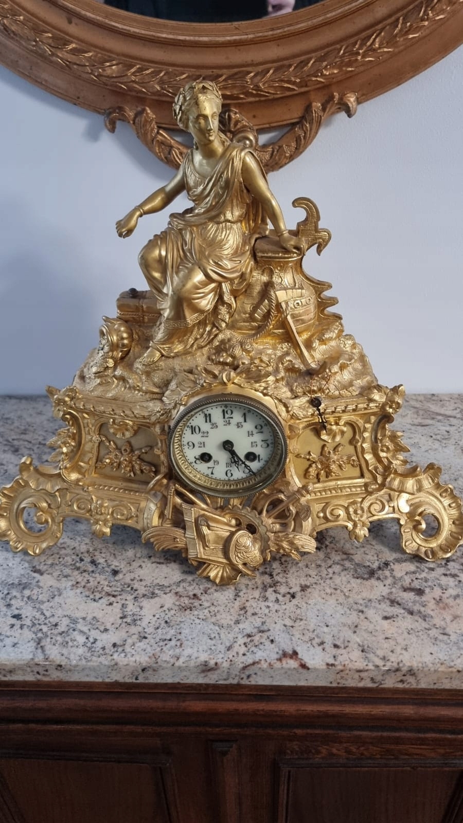 CUDOWNYY Zegar kominkowy brąz złocony połowa XIXw.