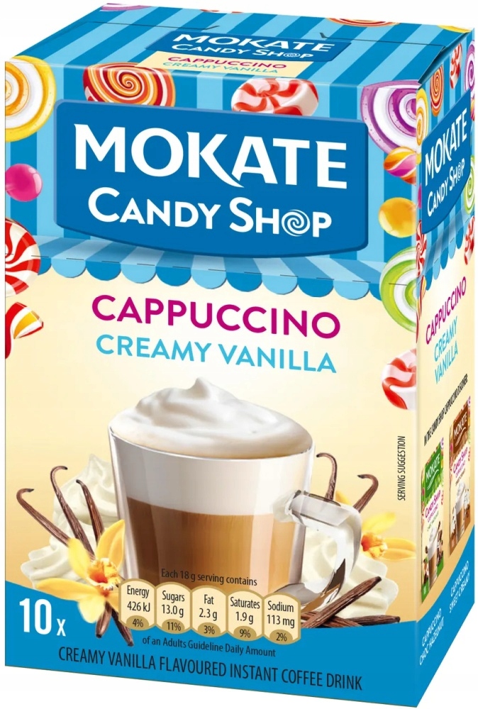 Просматривая «Цукерки Mokate Candy Shop CAPPUCCINO Вершково-ванільний 220г», вы можете быть уверены, что данный товар из каталога «Капучино» будет доставлен из Польши и проверен на целостность. В цене товара, указанной на сайте, учтена доставка из Польши. Внимание!!! Товары для Евросоюза, согласно законодательству стран Евросоюза, могут отличаться упаковкой или наполнением.