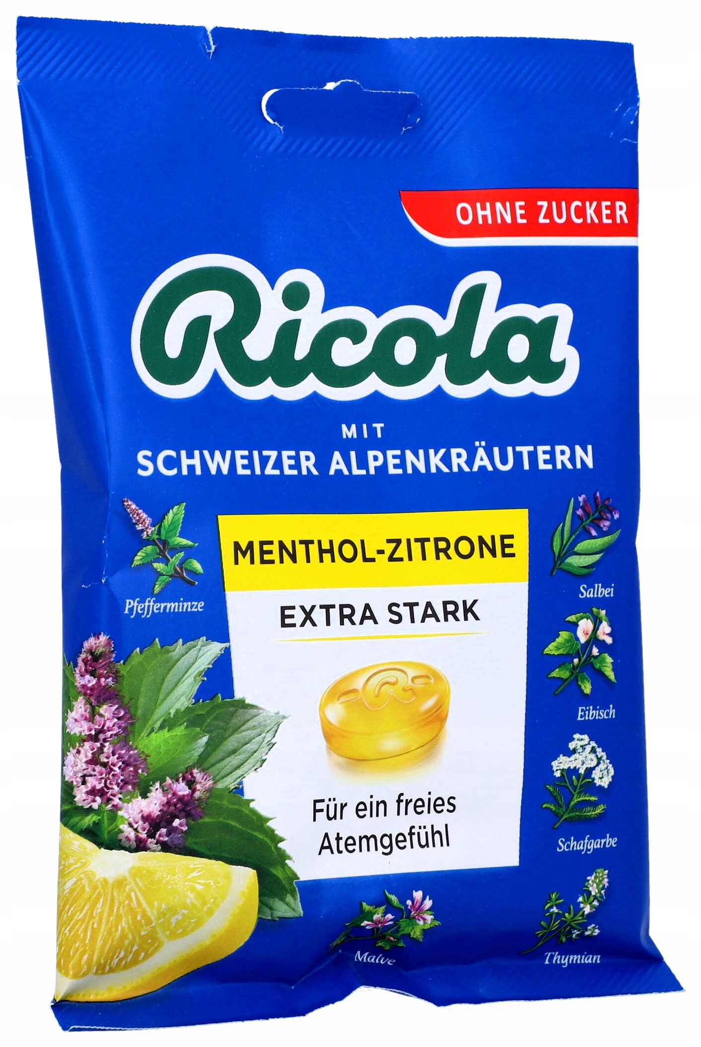 Наші продукти Ricola Menthol-Lemon Extra Strong поєднують додаткову кількість натурального м’ятного ментолу з перевіреною сумішшю 13 швейцарських альпійських трав і освіжаючим, соковитим лимоном. Ці надзвичайні цукерки гарантують вільне та свіже дихання!