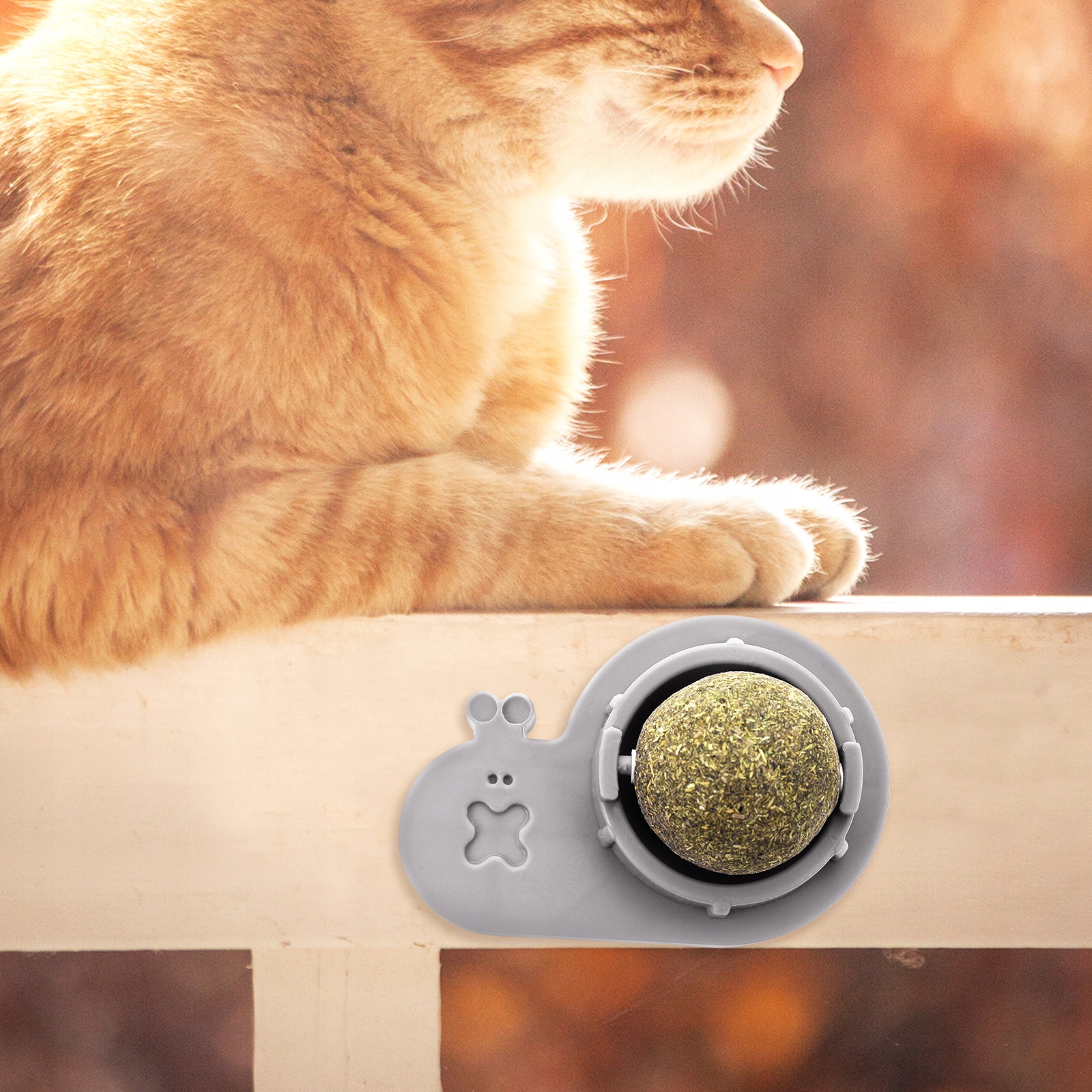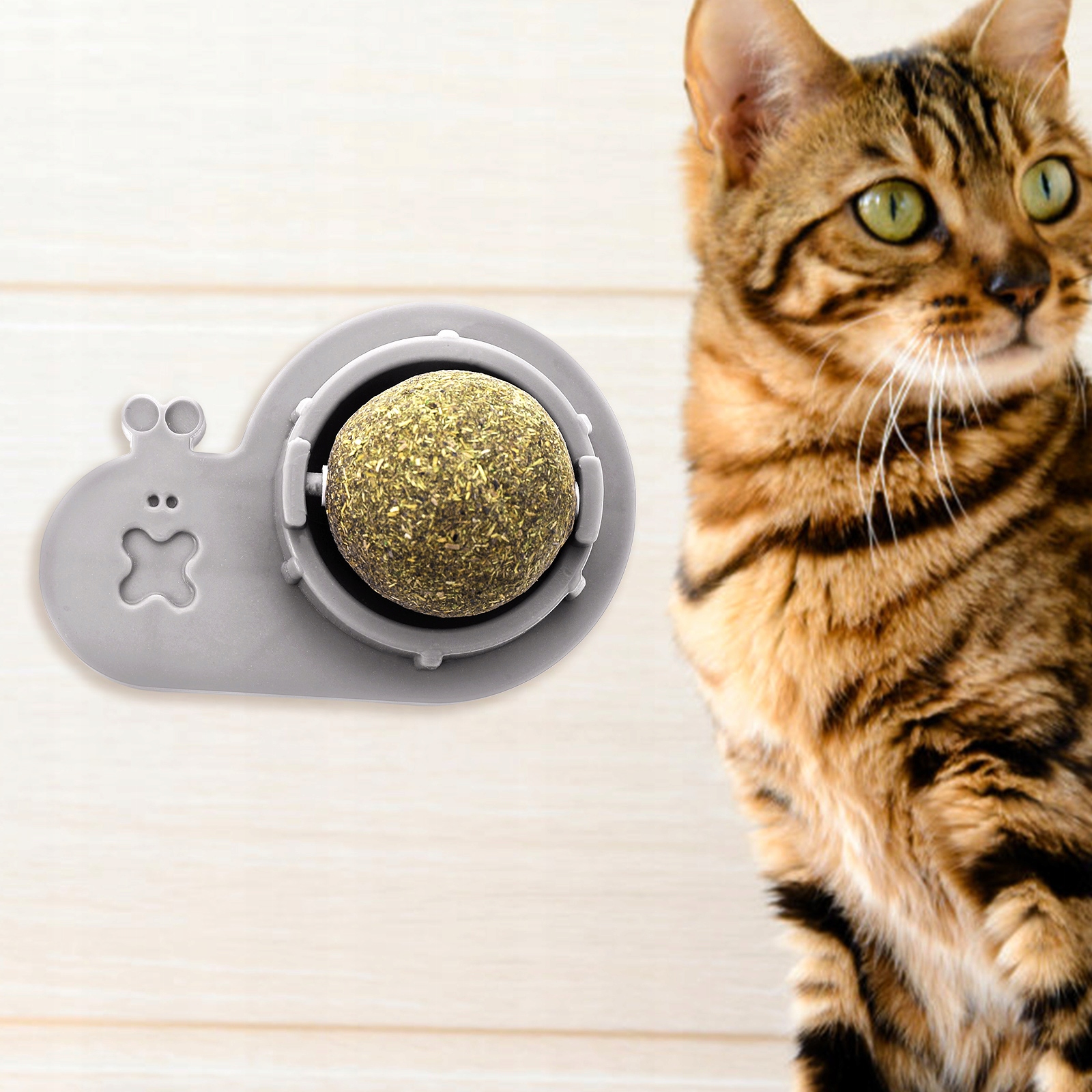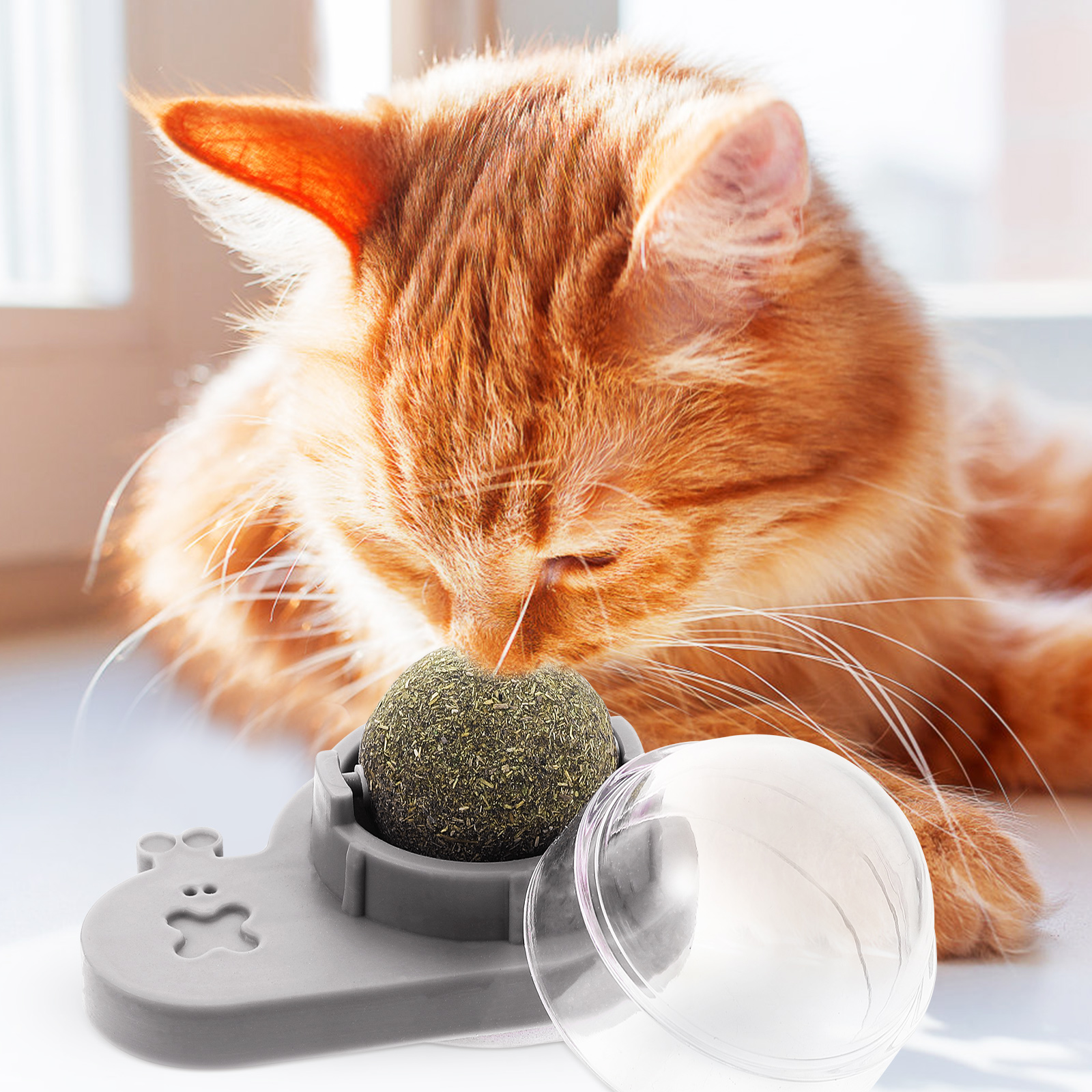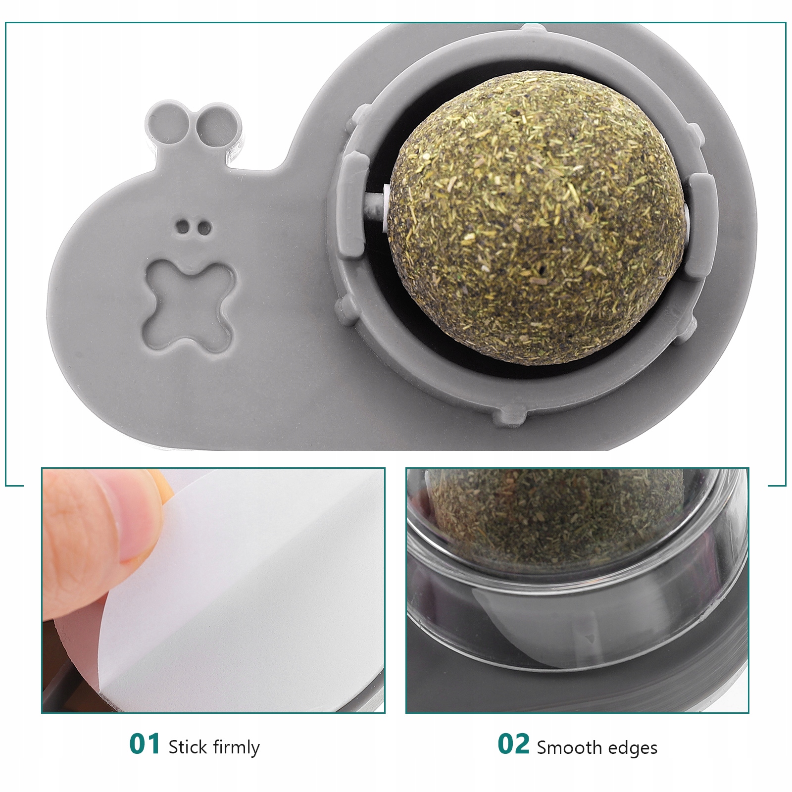 М'ячик з котячої м'яти тримає ваших котів на лапах цілий день. Ласощі для котів розроблено як комбінація форми кошеня з мультфільму та кульки з котячої м’яти, обох улюблених кошенятами, і їх можна легко безпечно приклеїти до стін або будь-якої іншої гладкої поверхні.