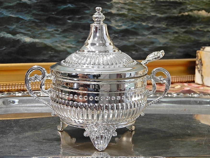 ЦУКЕРНИЦА ЦУКЕРНИЦЯ З ЛОЖКОЮ ОРИГІНАЛЬНО ДЕКОРИРОВАНА ПОСРІБЛЕНА ПОДАРУНОК