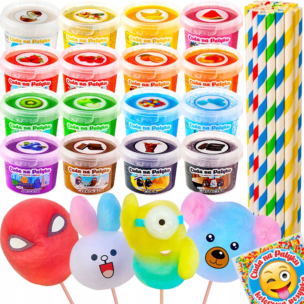 Набір містить усе необхідне для створення неймовірно барвистих творінь із солодкої вати.