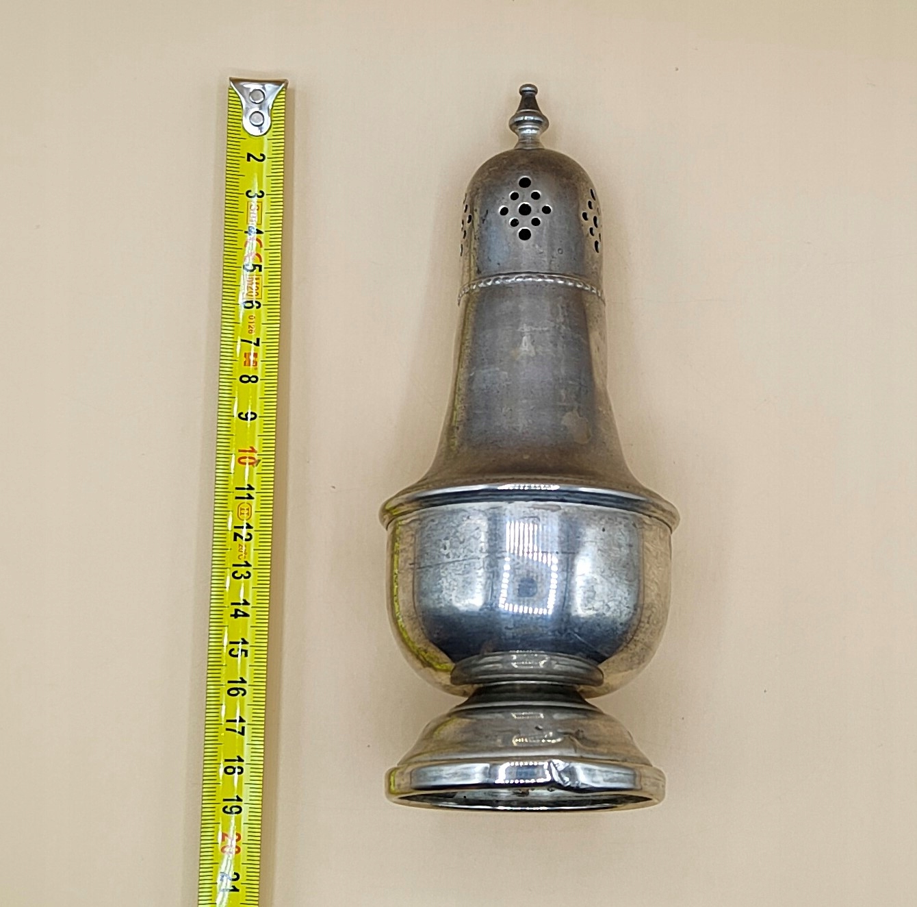 старовинні, стародавні цукор цукор. Колекція різних предметів на аукціоні. Їх роками збирали моя багатогранна родина. Настав час змінити власника. Елементи, які я надягаю, знаходяться в дуже хорошому стані. Якщо через їх вік чи використання вони мають недолік, це в описі та на знімках. Фотографії завжди багато, вони детально описані, це не кілька випадкових фотографій, завантажених з Інтернету, вони є моїм авторством, і вони завжди представляють товар, що продається. Видані предмети для мене унікальні, вони є найкрасивішими та найціннішими дорогоцінними каменями з нашого дому, у нас більше їх, у вільний час я поступово їх демонструватиму. Дякую за те, що ви прочитали вступ, і я запрошую вас ознайомитись із детальним описом теми. Метал - грубо срібло. У верхній частині є цукрові отвори для порошків. Гумова пробка/пробка під половиною. Розміри: висота 19 см, діаметр у найширшому місці 7,5 см, вага 175 грам. Це дуже старий об’єкт, як ви бачите, в місцях він має вм'ятини. Основа також має вм'ятину - напевно, попередній власник аматора; (він намагався перевірити, що це за метал /інвестиції, ніж предмет повсякденного використання, рішення, яке воно належить новому власнику;).