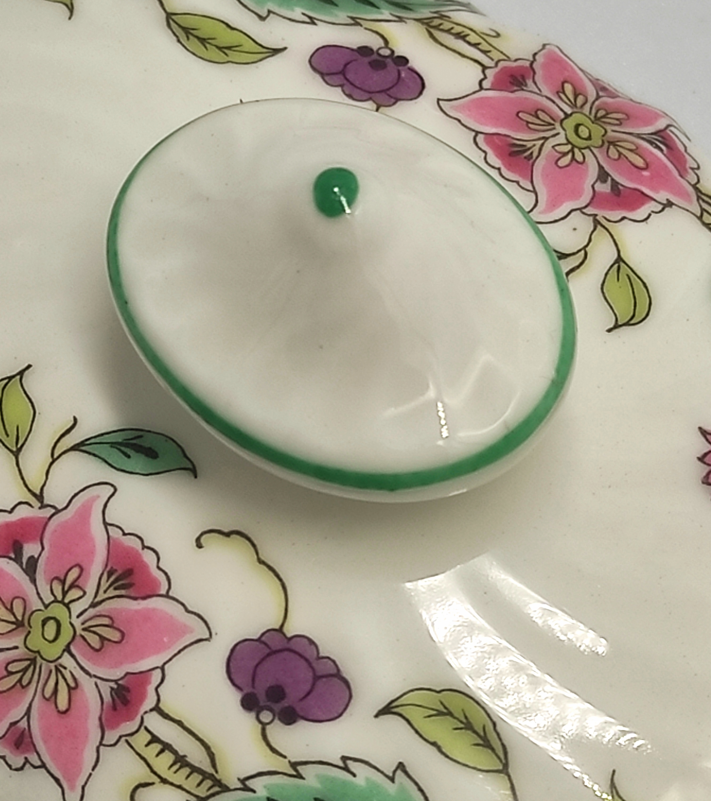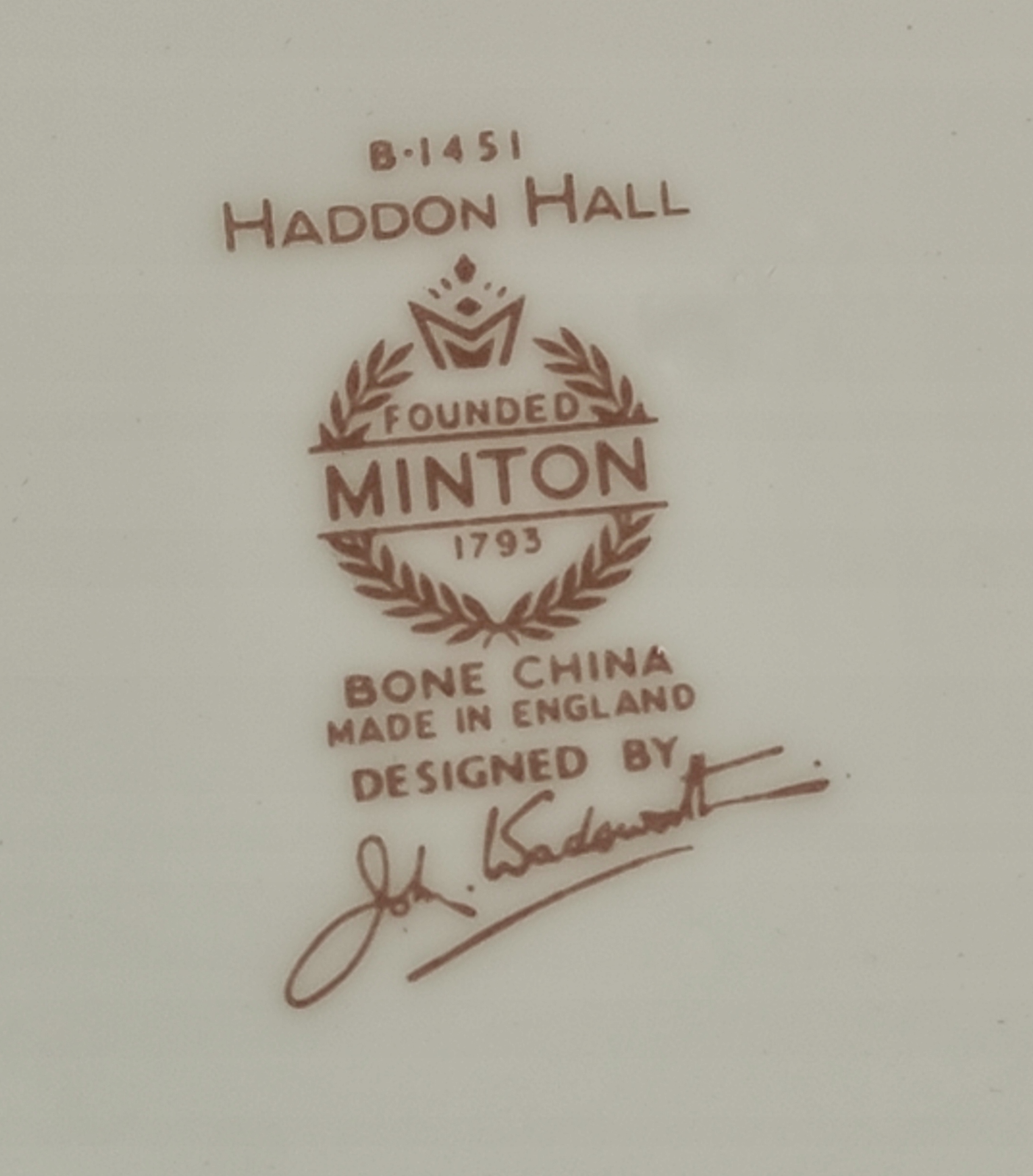 Колекція Haddon Hall виготовлена з кістяного фарфору. Дизайнер Джон Водсворт. Декор включає надзвичайно барвисті квіткові візерунки, натхненні візерунком шпалер у сільській ратуші в Дербіширі під назвою Хеддон Хол. Це найпопулярніша колекція виробництва Minton. Виробництво було оцінено королівською родиною, отримавши перші королівські сертифікати постачальника, які іноді називають королівськими гарантіями, від короля Едуарда VII у 1901 році. Головною особливістю цієї колекції є відсутність золота. Натомість ми маємо зелені акценти. Можна мити в посудомийній машині.