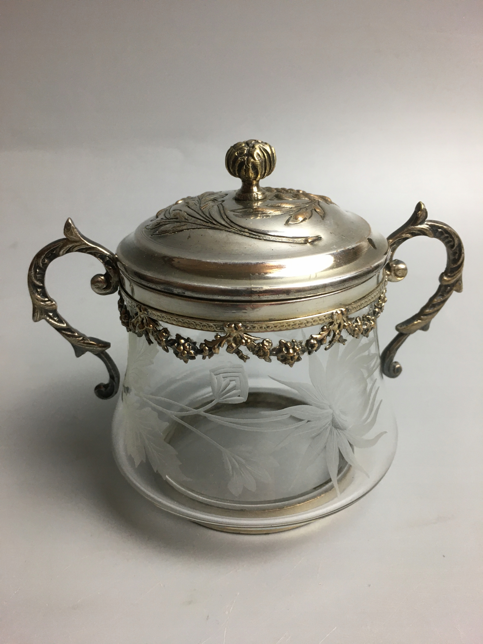 Цукорниця з гравірованого скла з накладними елементами в стилі Людовика XV.